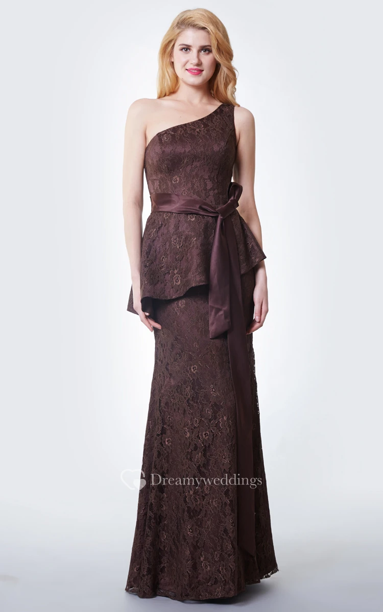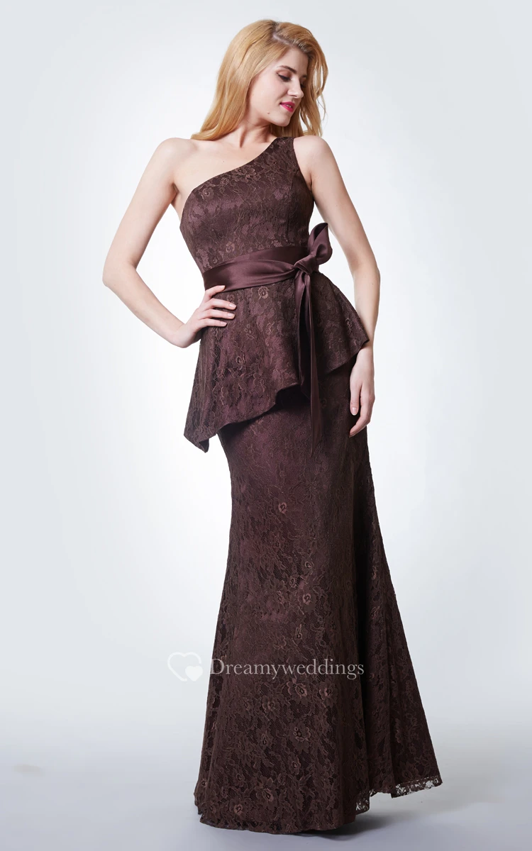 Stupefying One Shoulder Mermaid Lace Gown With Satin Sash