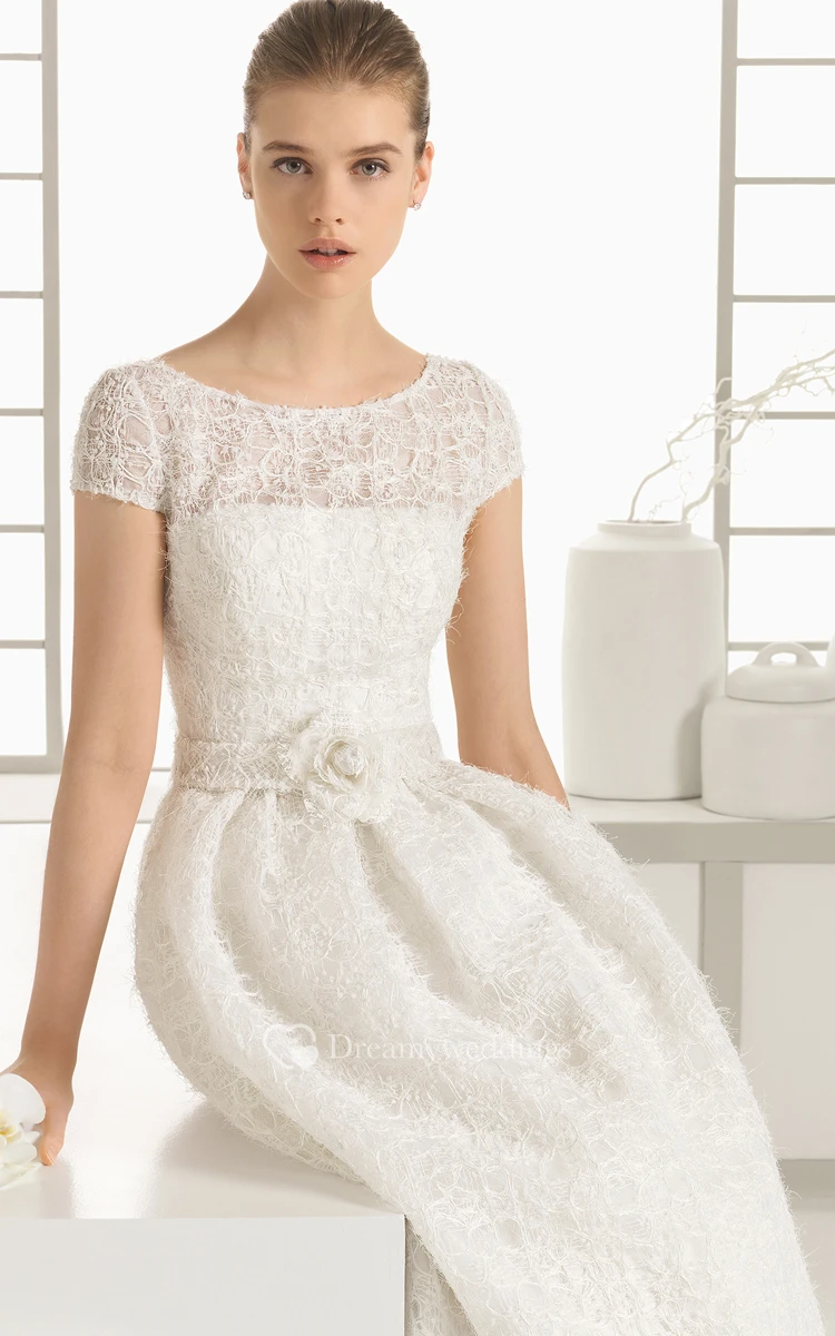 Style Bateau-Neck Gown With Low-V Back And Flower