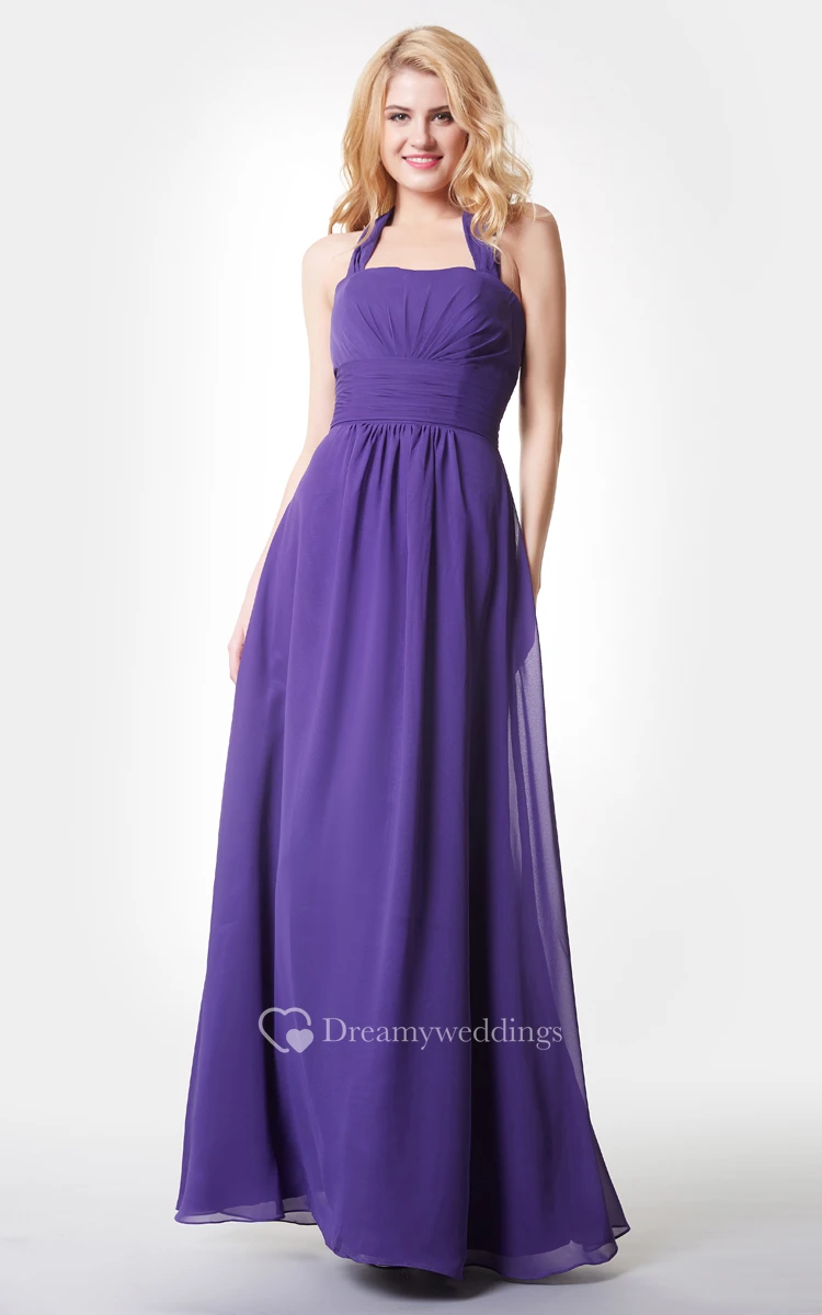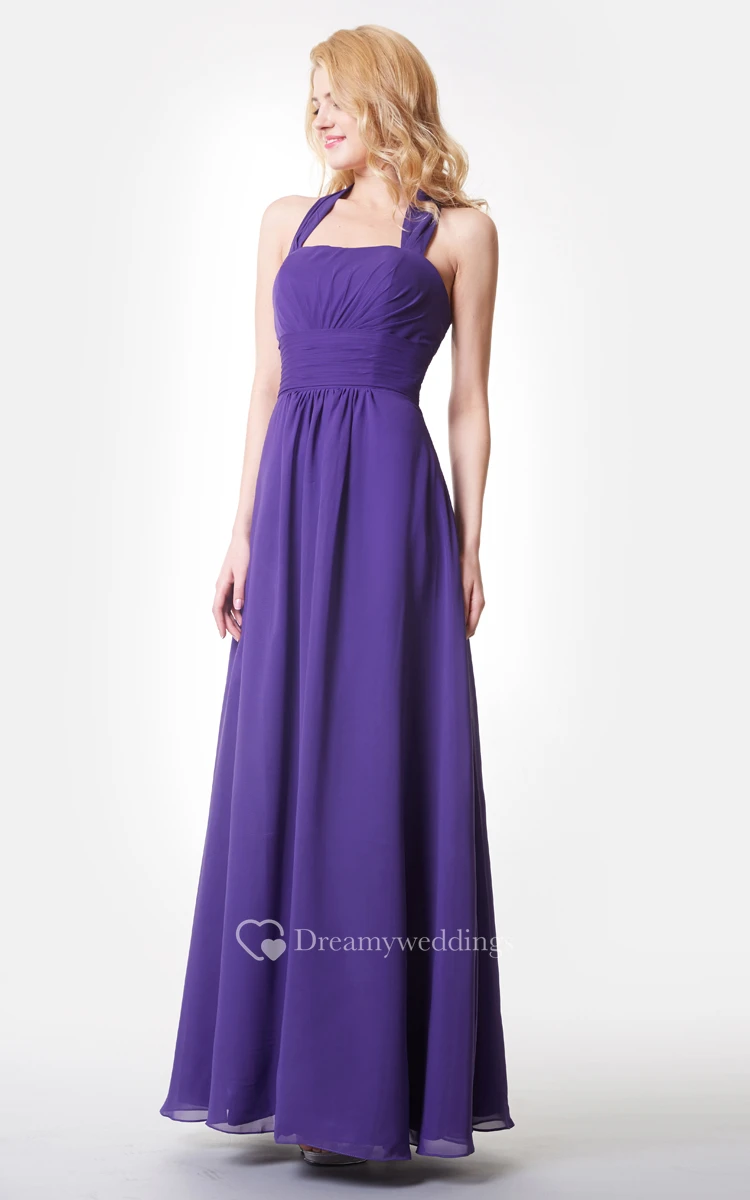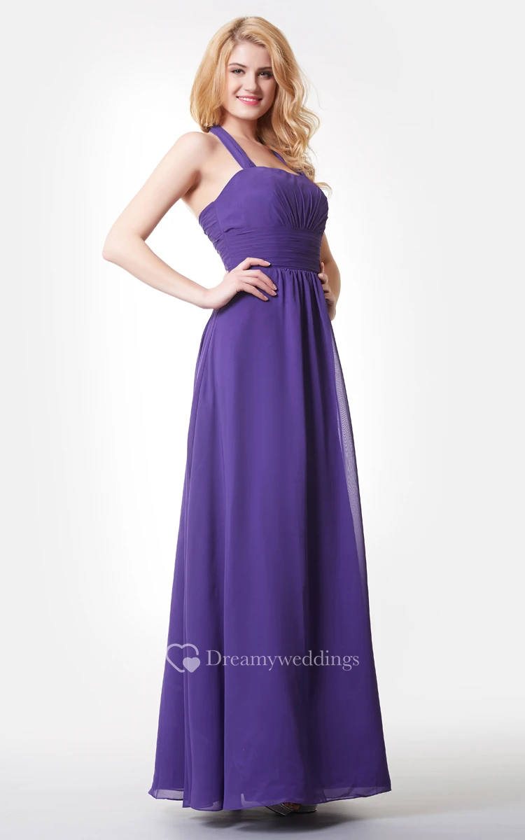 Stylish Backless Ruched A-line Long Chiffon Dress