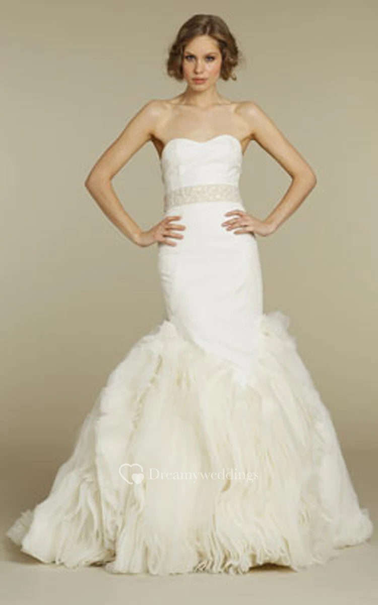 Stylish Strapless Fit and Flare Organza Dress With Sheer Corset Back
