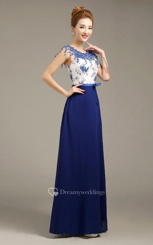 Sumptuous Appliques Floor-Length Beaded A-Line Prom Dress