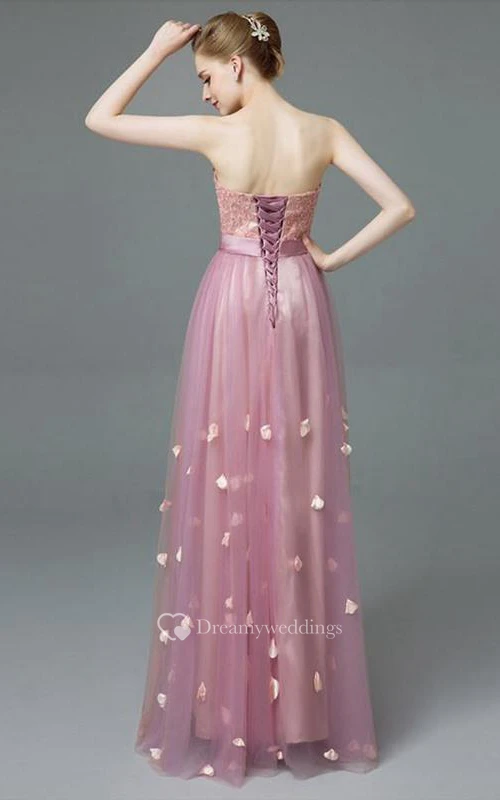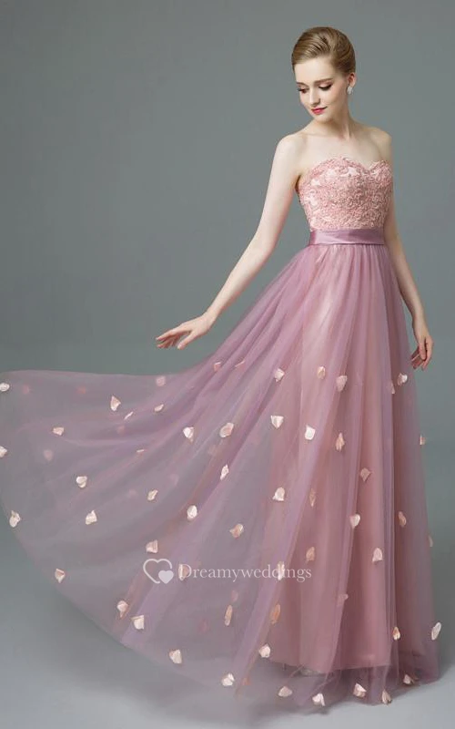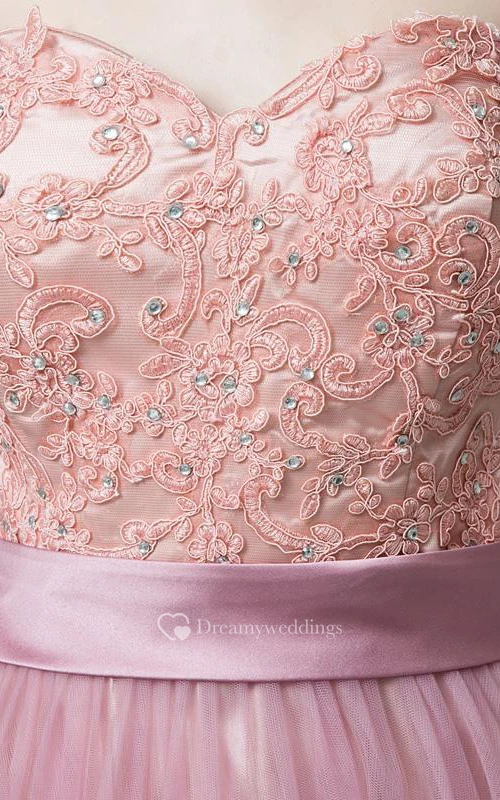 Sweetheart A-Line Appliques Beaded Sashes Prom Dress