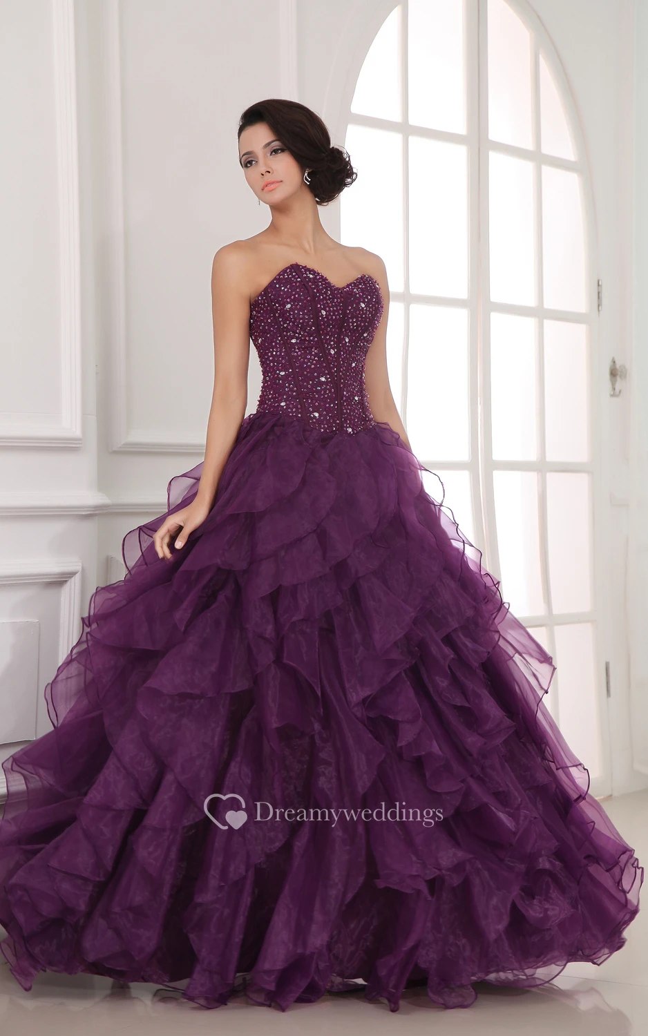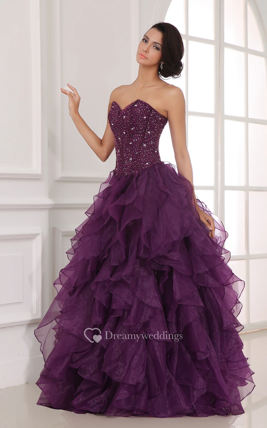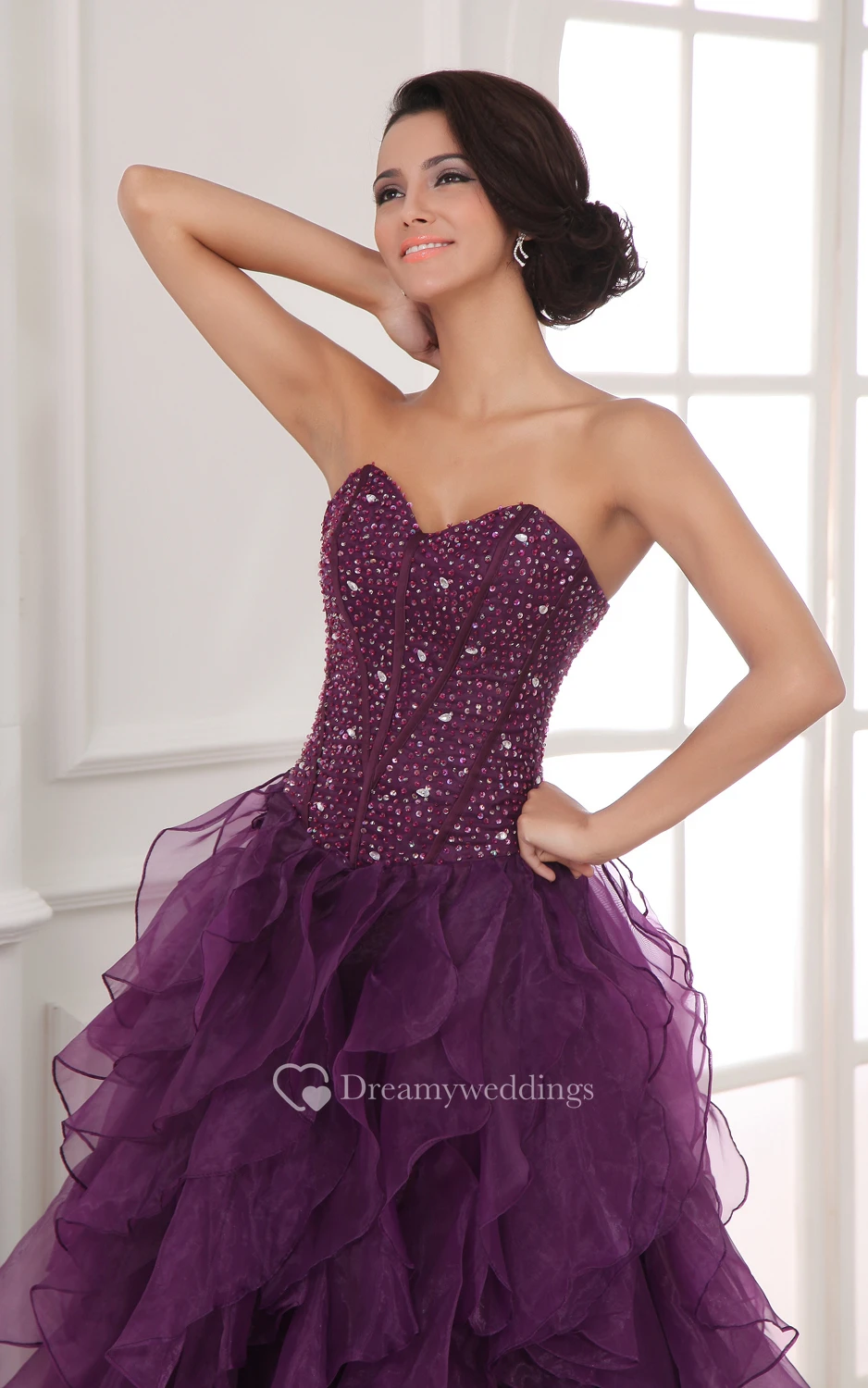 Sweetheart A-Line Ball Gown Dress With Organza Ruffles and Beading