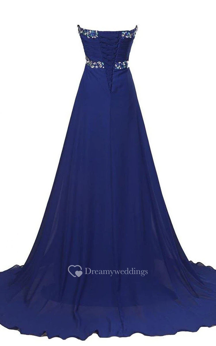 Sweetheart A-line Chiffon Gown With Rhinestones Detail