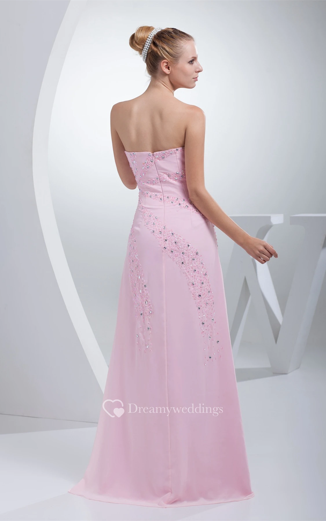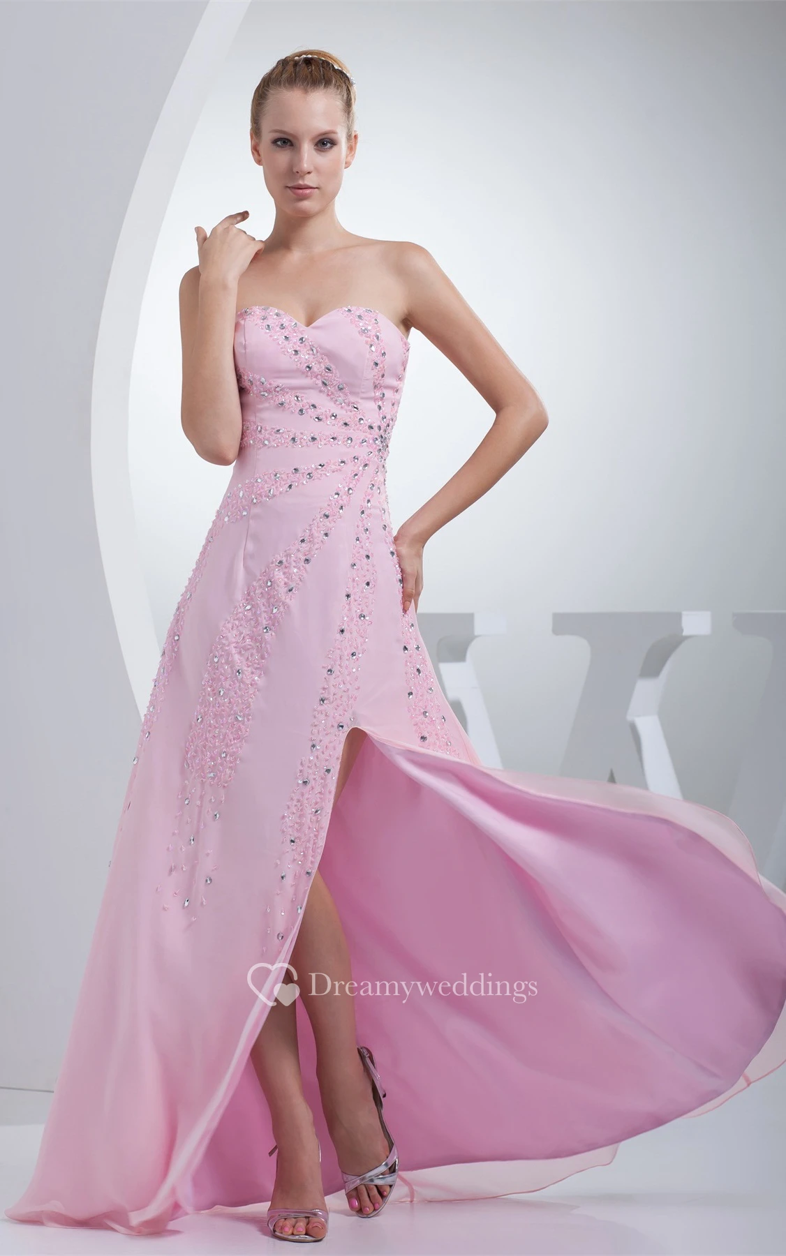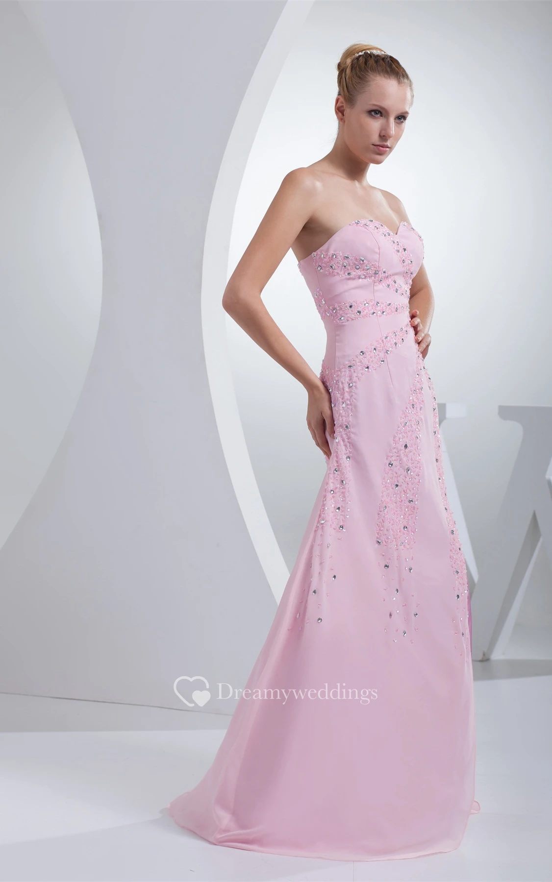 Sweetheart A-Line Jeweled Chiffon Gown With Sweep Train