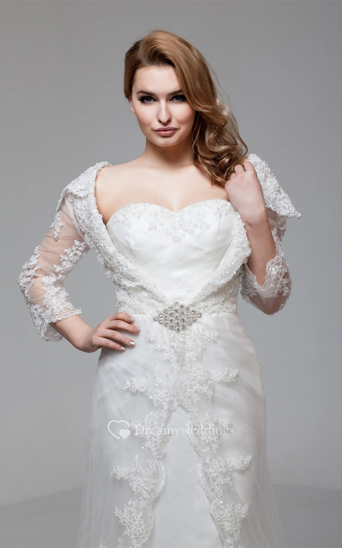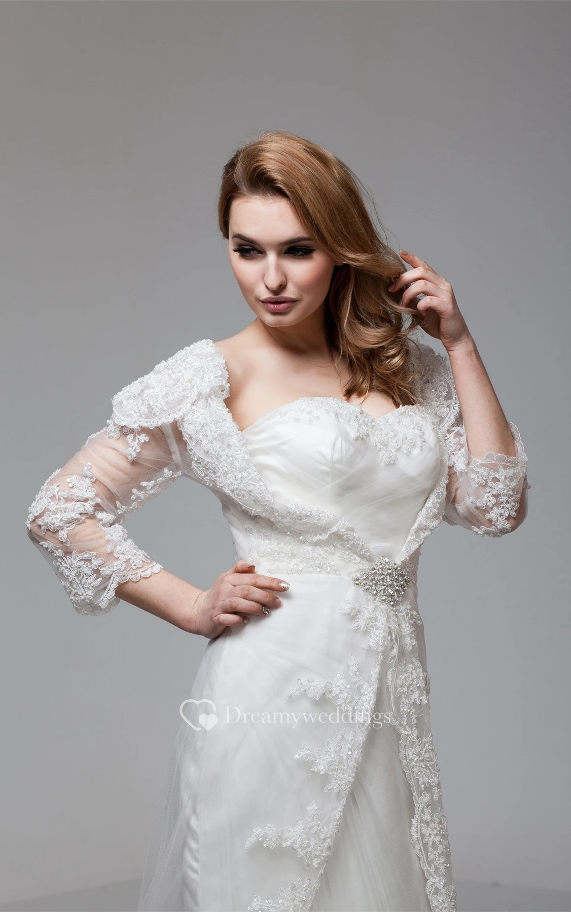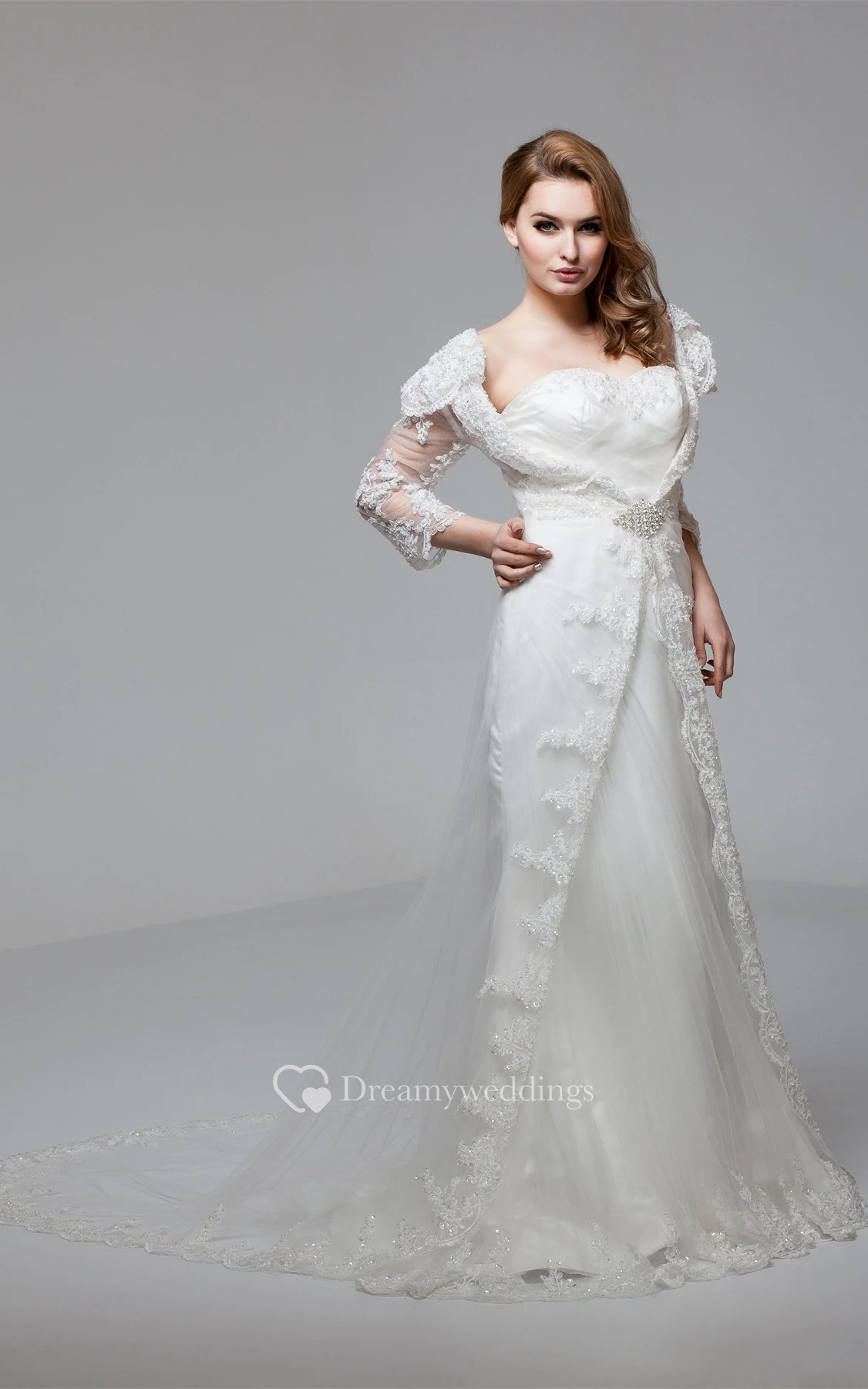 Sweetheart A-Line Lace Illusion Sleeves and Gown With Broach