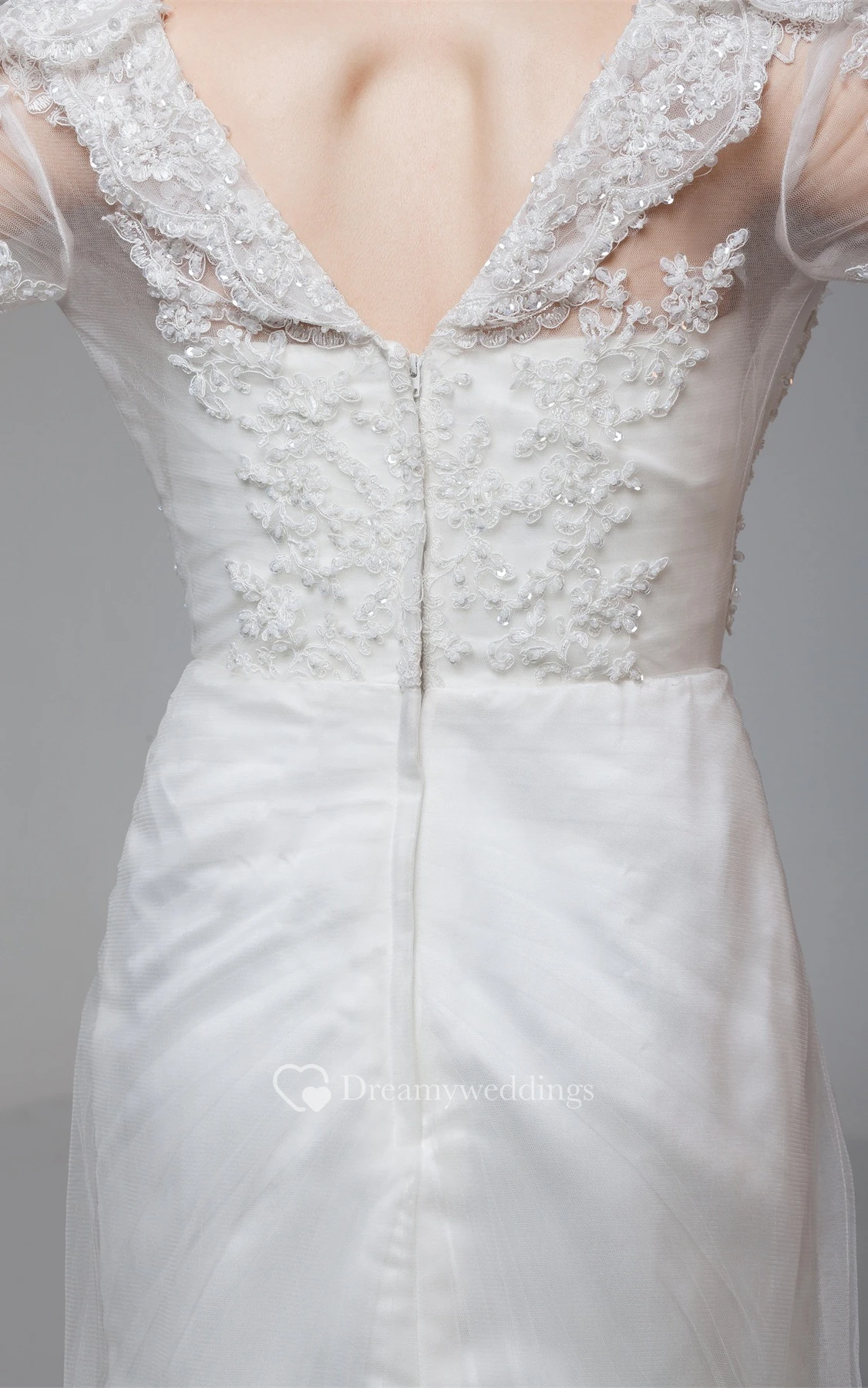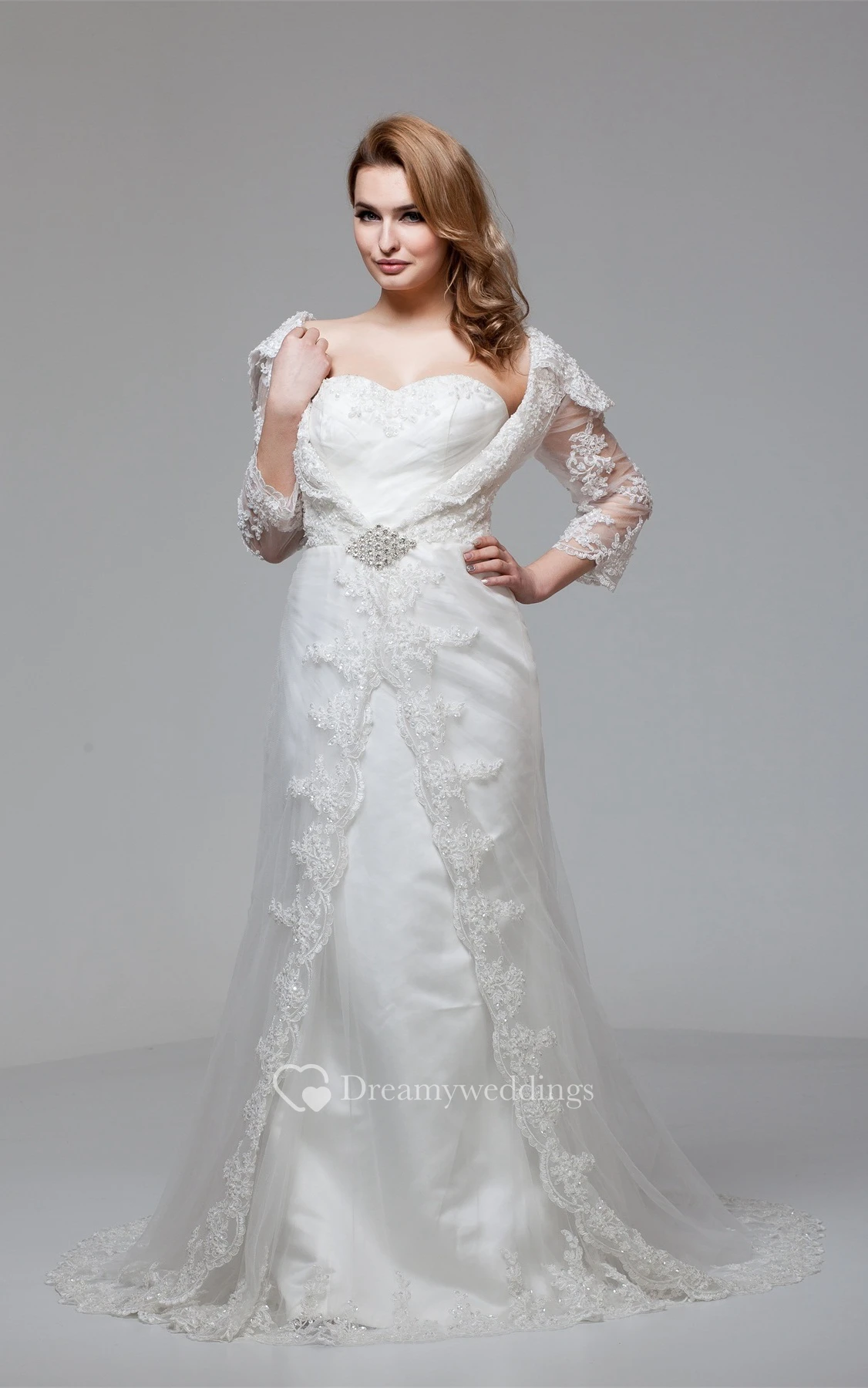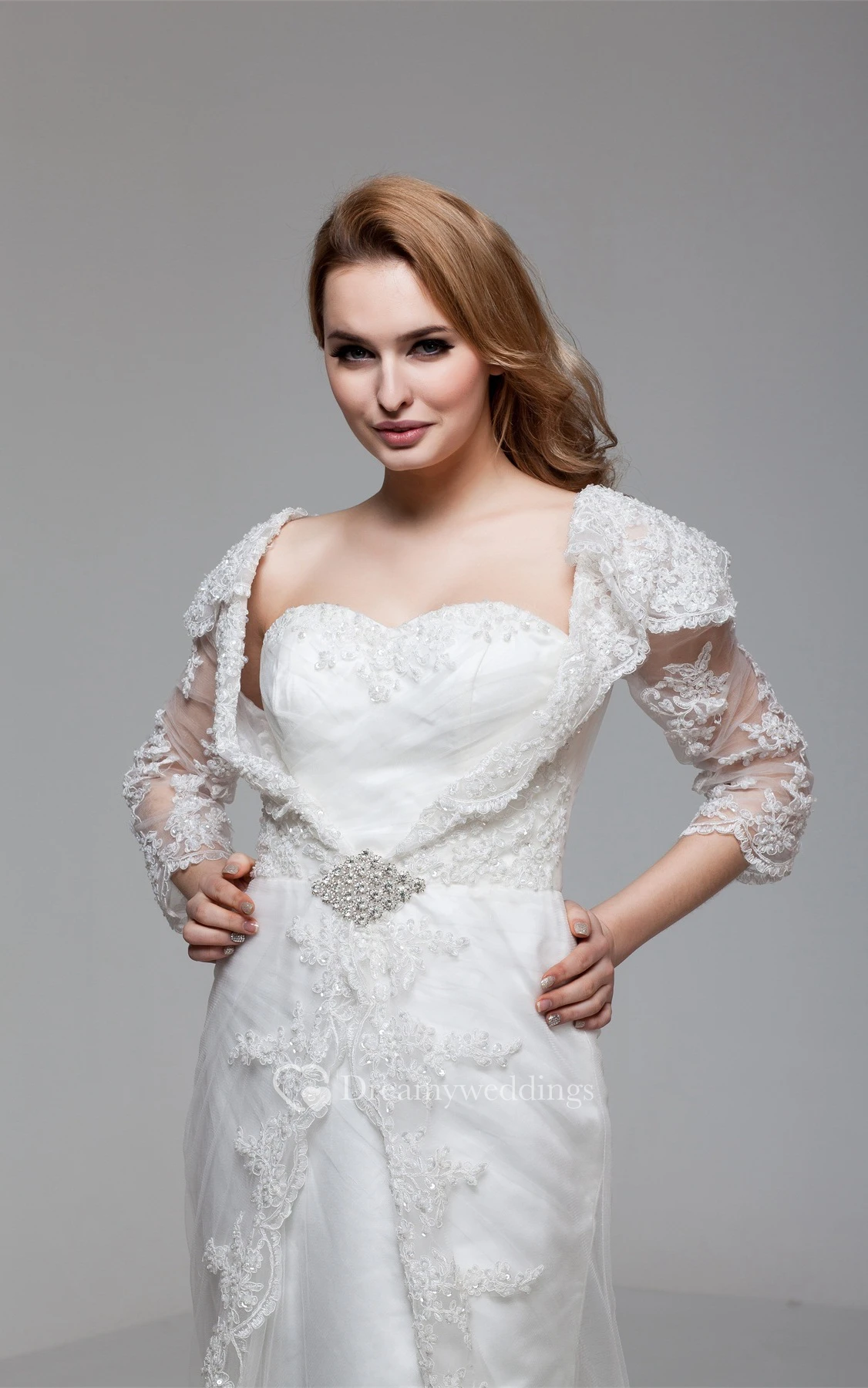 Sweetheart A-Line Lace Illusion Sleeves and Gown With Broach