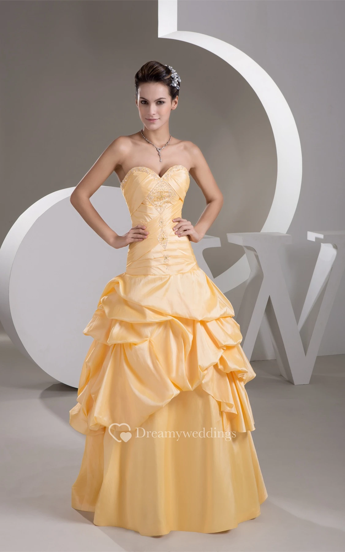 Sweetheart A-Line Pick-Up Gown With Crystal Detailing