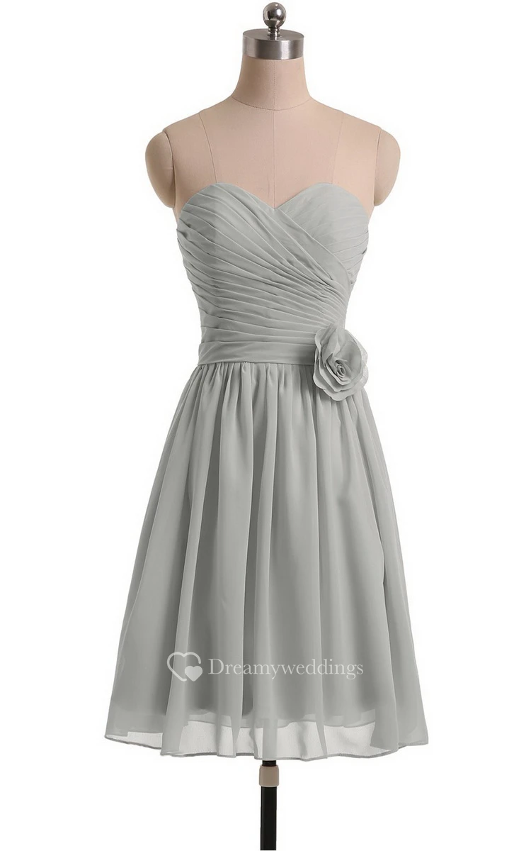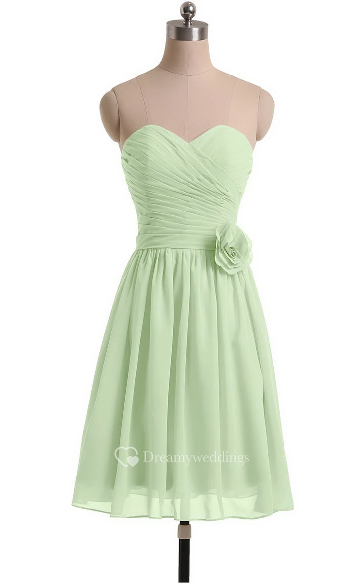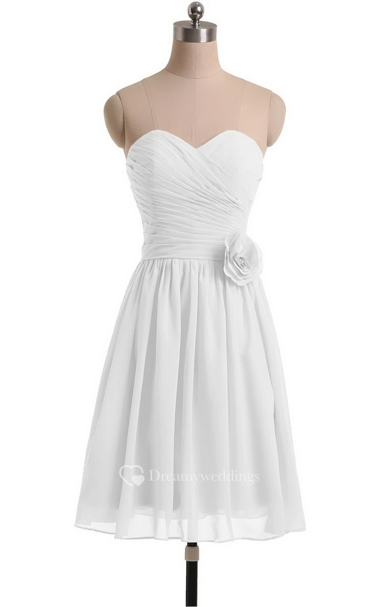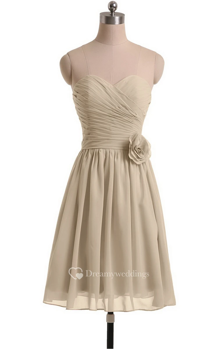 Sweetheart A-line Short Chiffon Dress With Flower