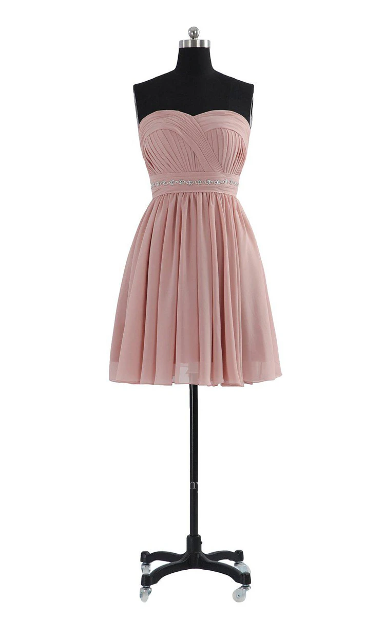 Sweetheart A-line Short Dress With Beaded Waistline