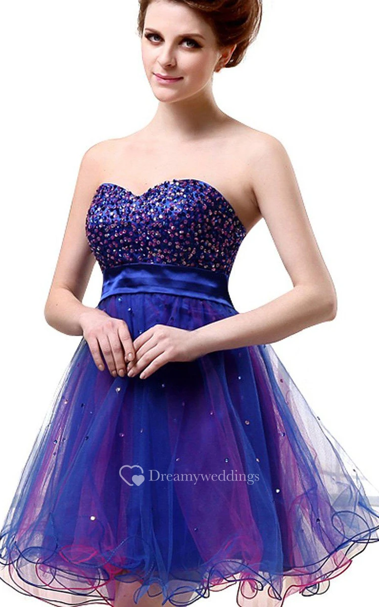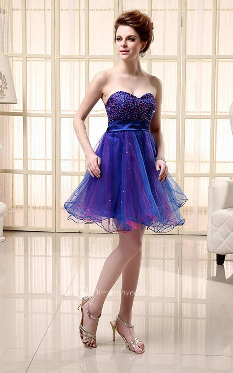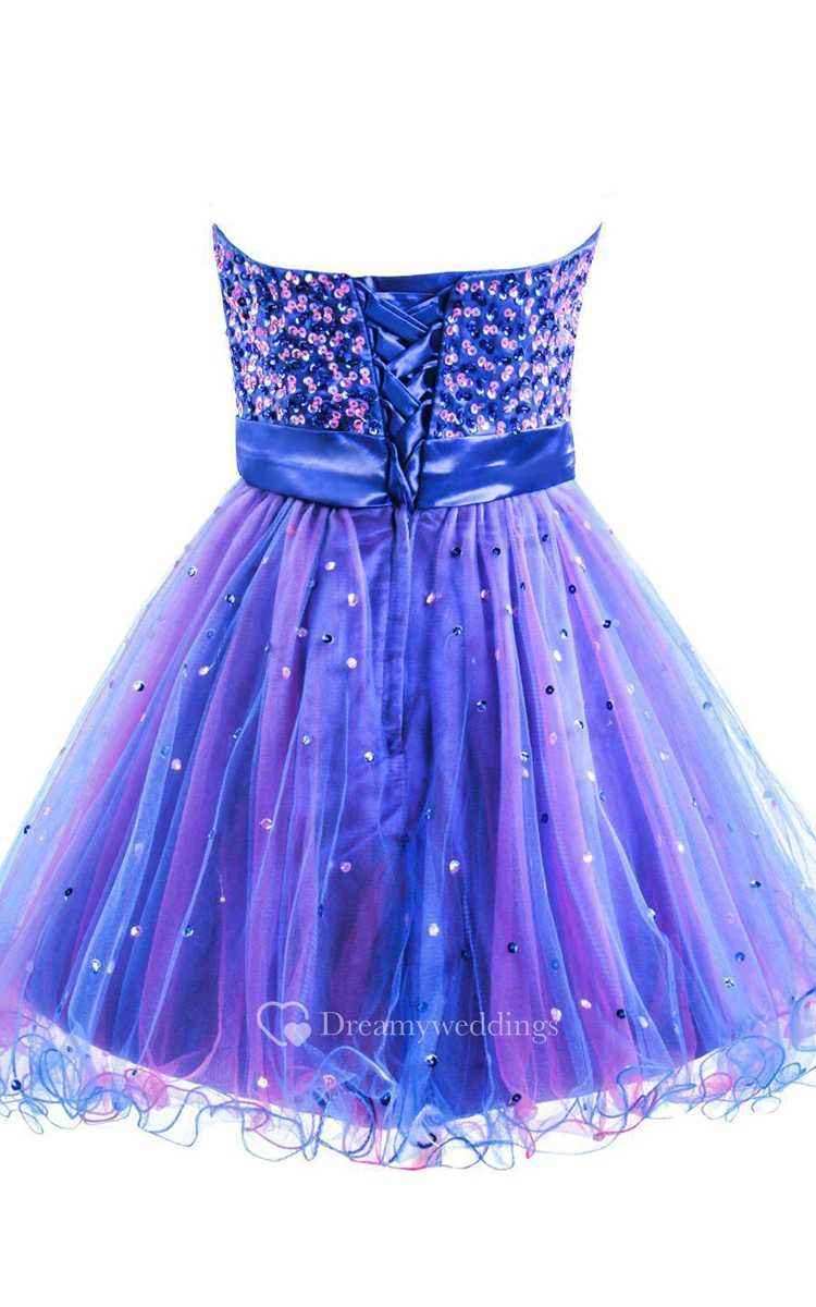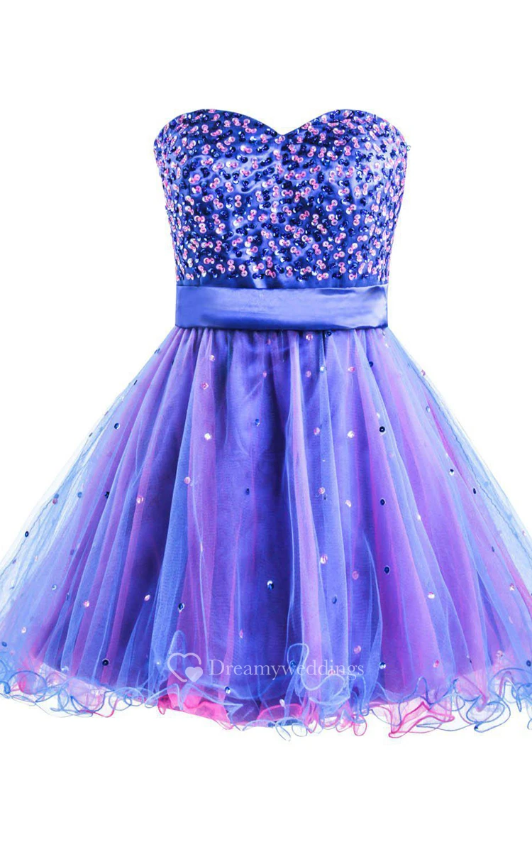 Sweetheart A-line Short Dress With Ruffles and Sequins