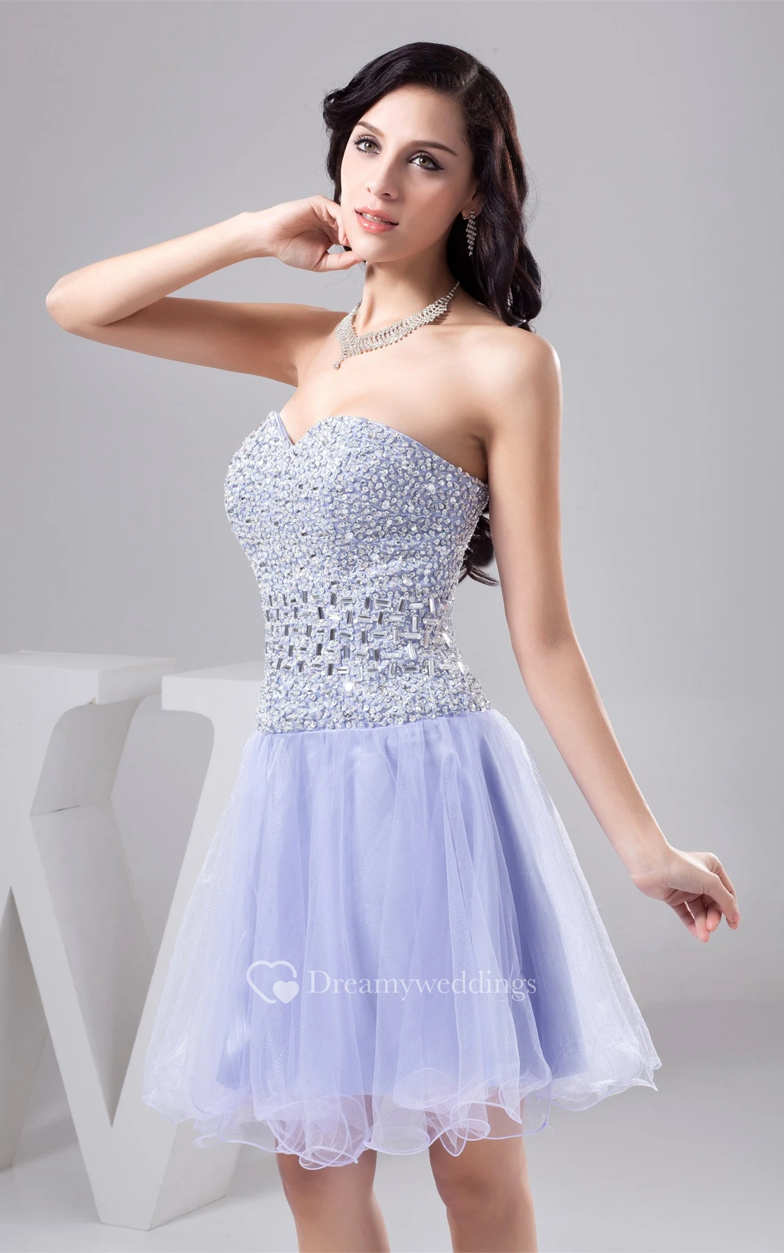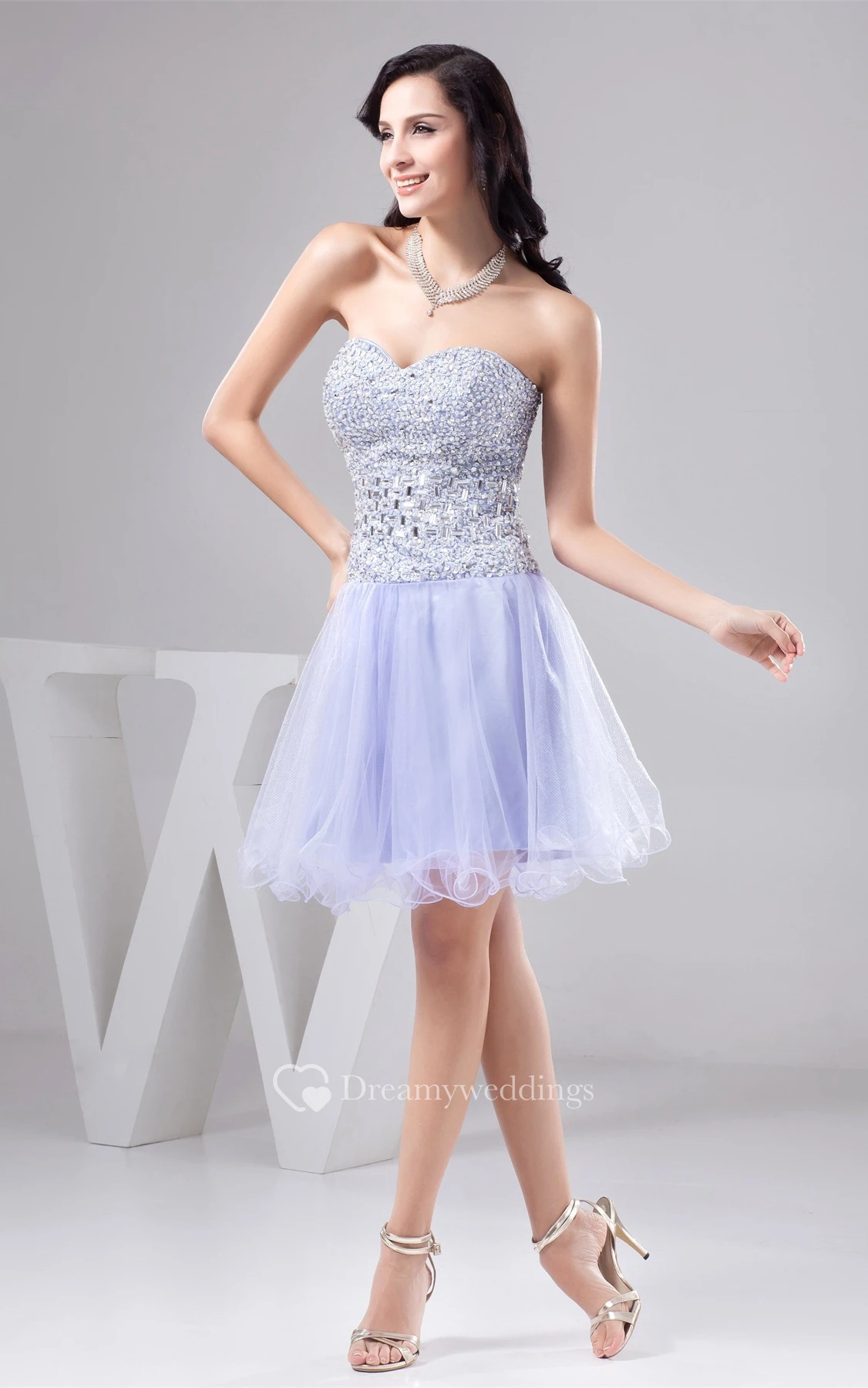 Sweetheart A-Line Short Jeweled Dress With Pleats