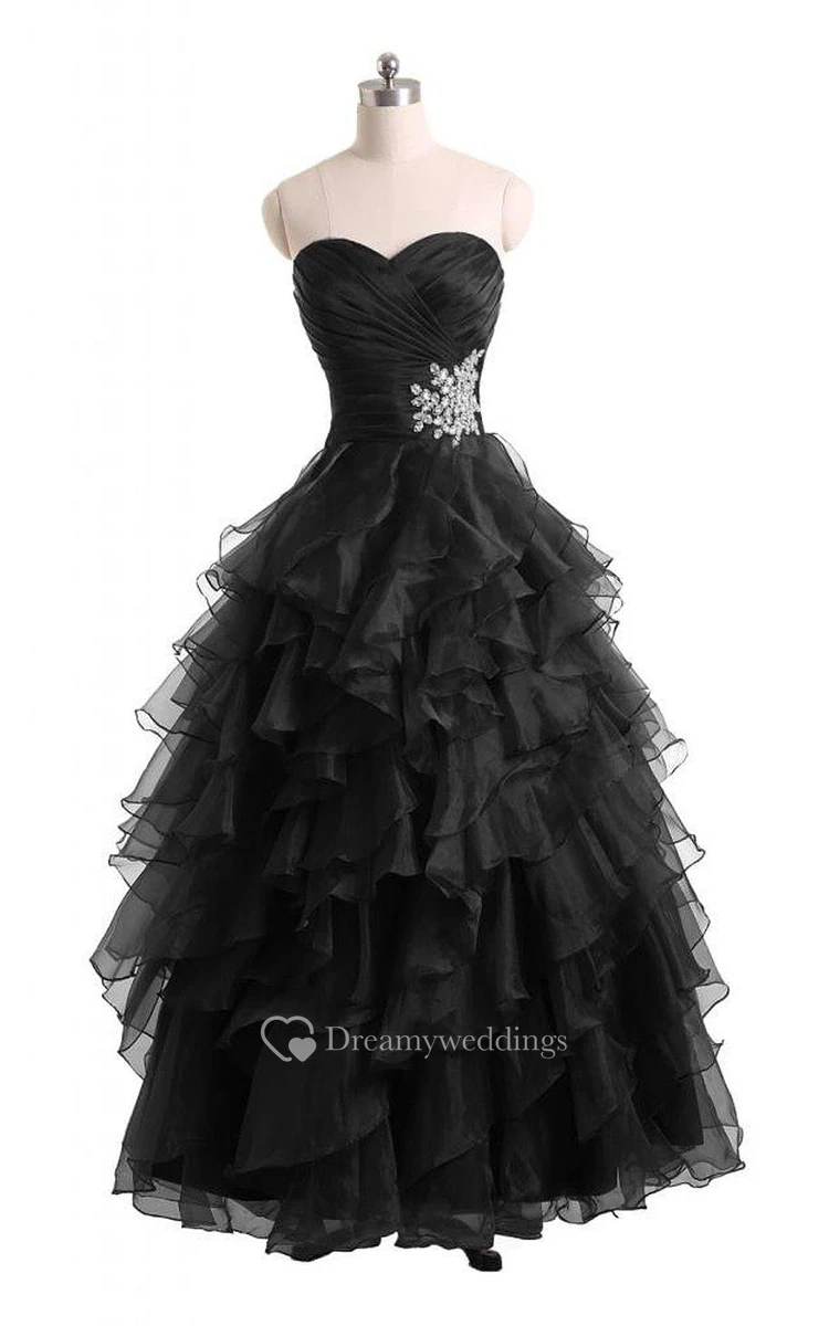 Sweetheart A-line Tiered Ruffled Dress With Beadings