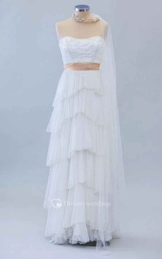 Sweetheart A-Line Tulle Dress With Tiered Skirt and Beadings