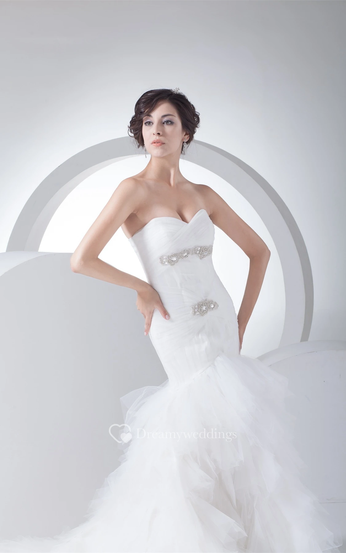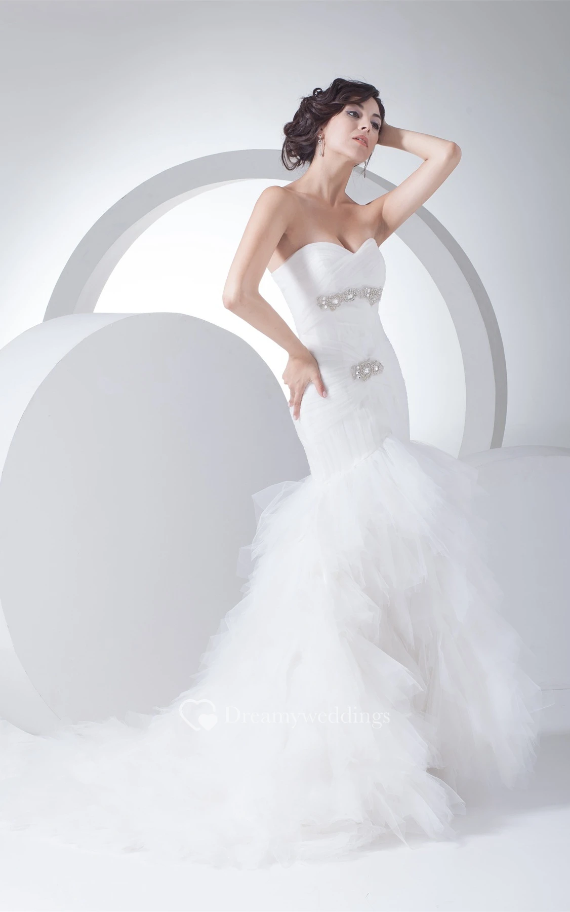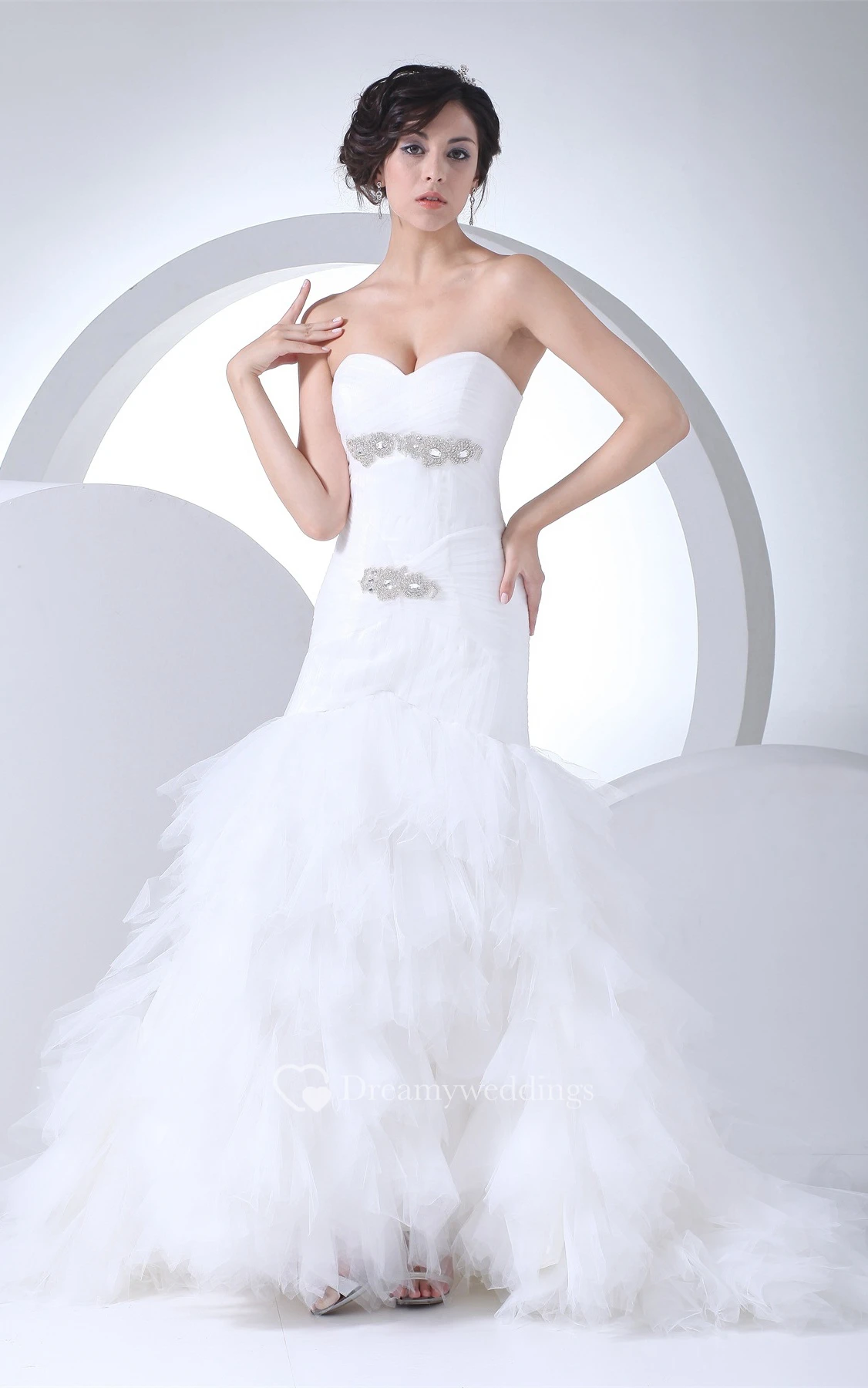 Sweetheart A-Line Tulle Ruffled Skirt and Gown With Beading