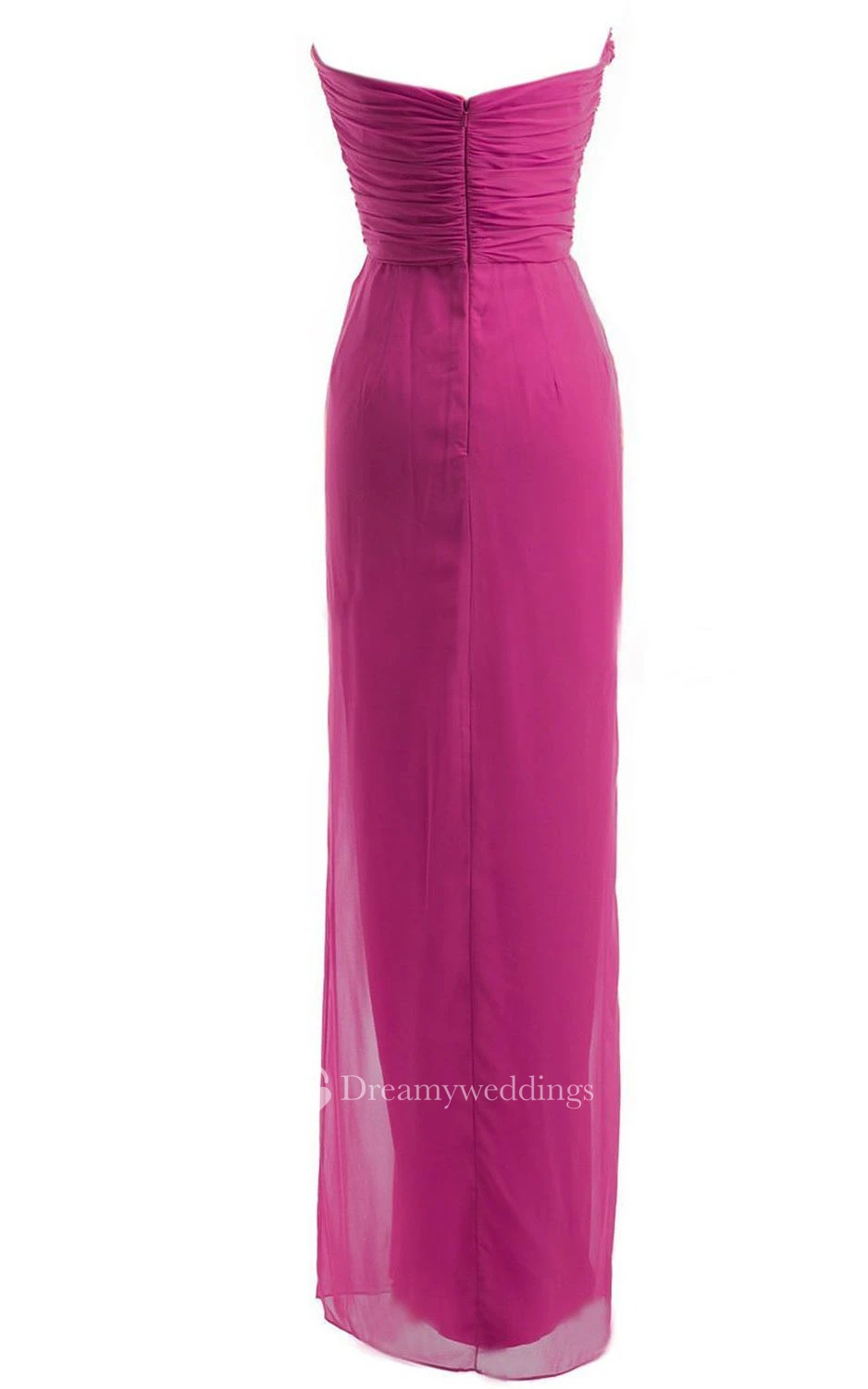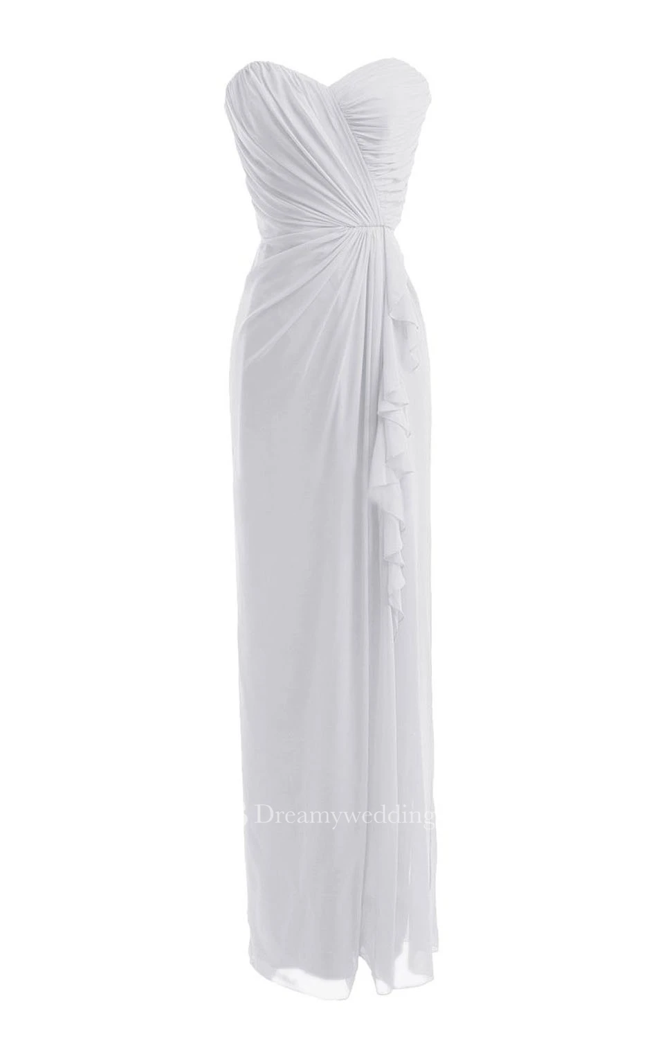 Sweetheart Asymmetrical Ruched Long Pleated Chiffon Dress