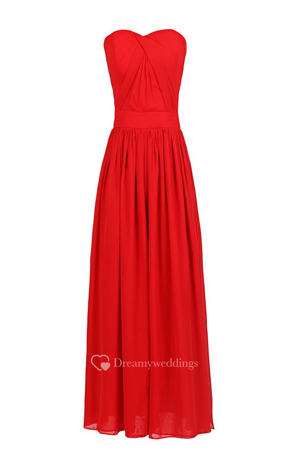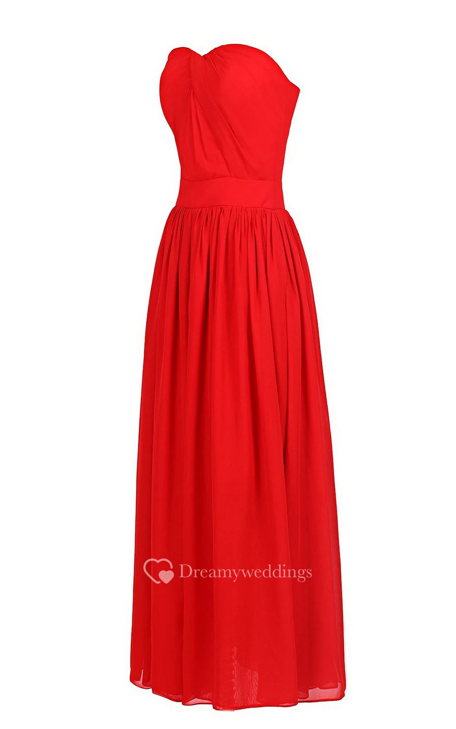 Sweetheart Asymmetrical Ruched Long Pleated Chiffon Dress