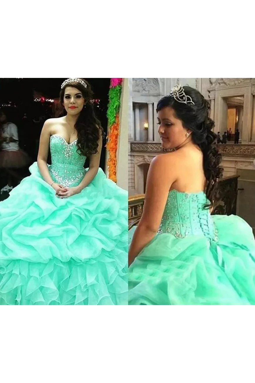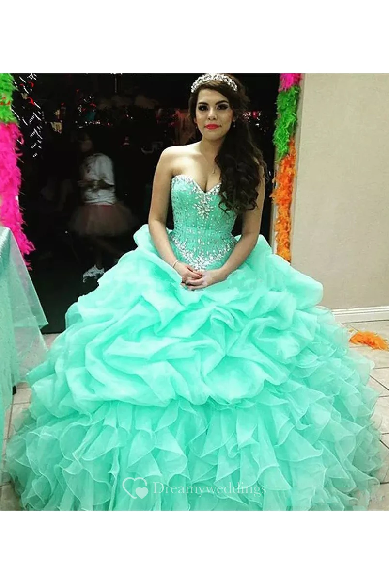 Sweetheart Ball Gown Floor-length Sleeveless Organza Prom Dress with Lace-up Back
