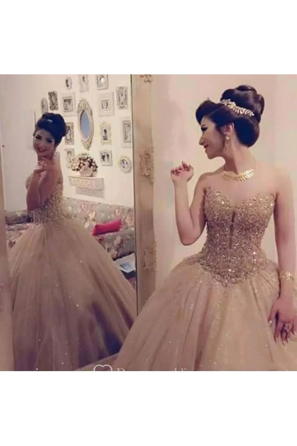 Sweetheart Ball Gown Floor-length Sleeveless Tulle Sequins Prom Dress with Zipper Back