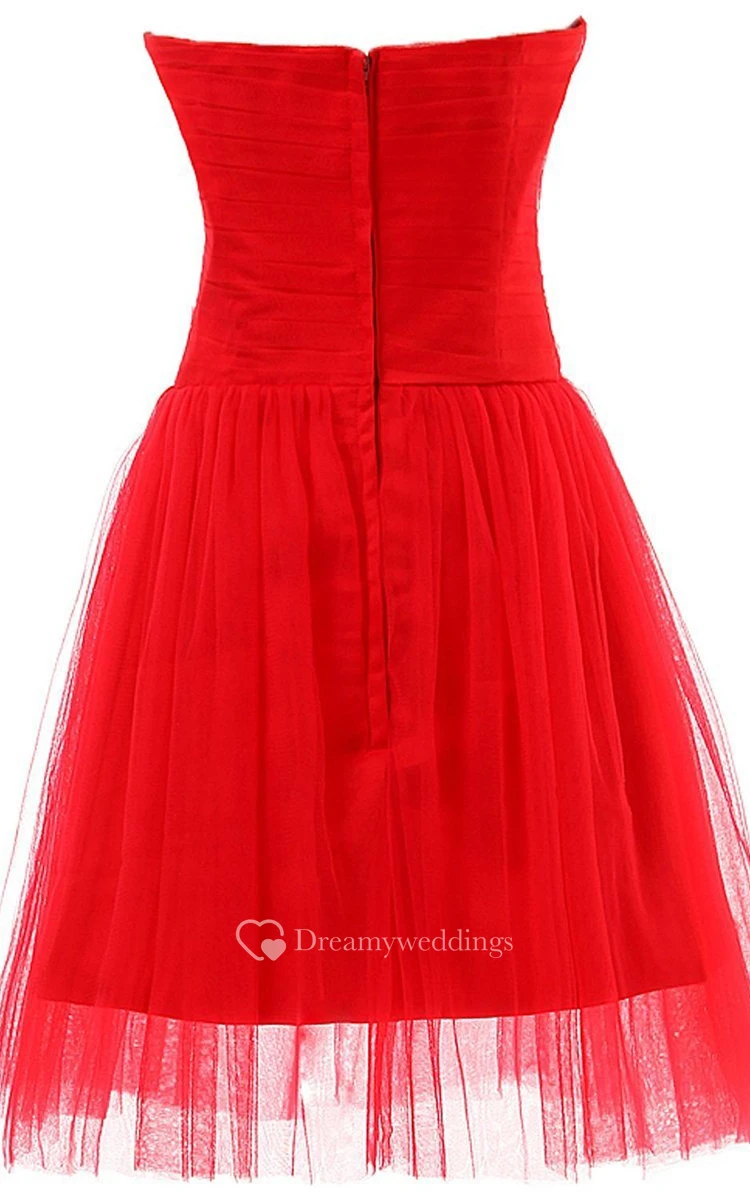 Sweetheart Basque Waist Dress With Tulle Overlay
