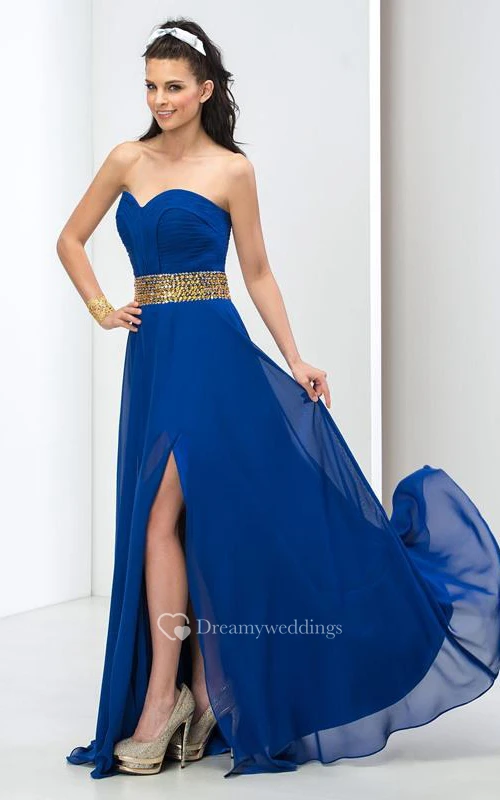Sweetheart Beaded Front-Split Long Prom Dress