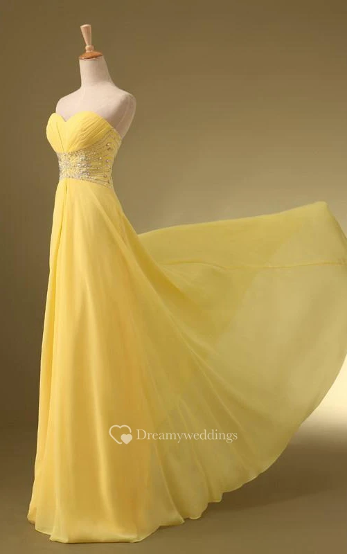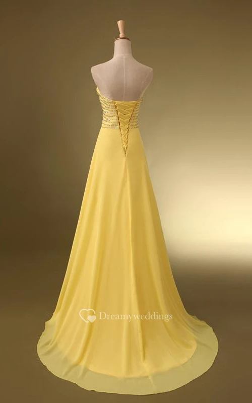 Sweetheart Beaded Ruches A-Line Lace-Up Floor-Length Prom Dress