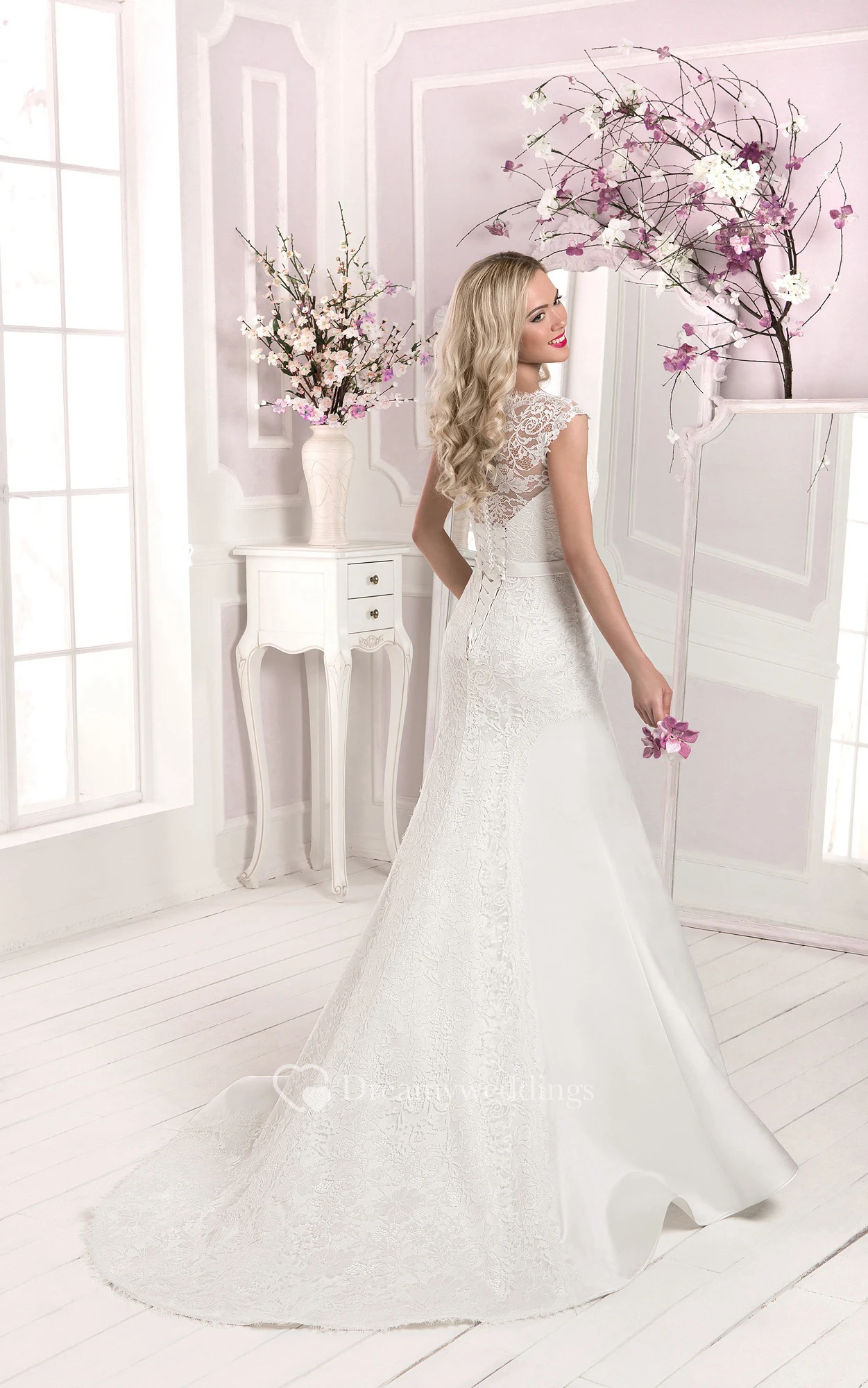 Sweetheart Cap Sleeve Bow Lace Sheath Dress