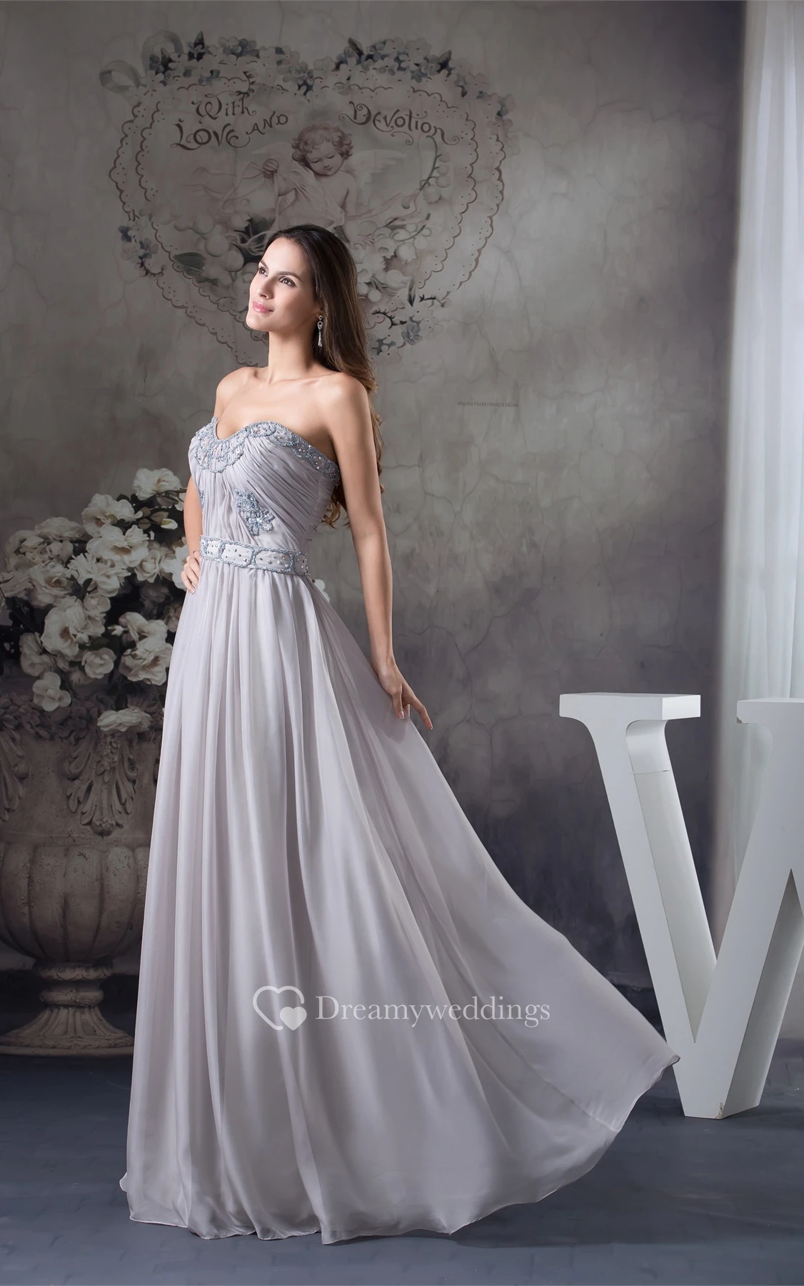 Sweetheart Chiffon Floor-Length Ruched Stress and Dress With Beading