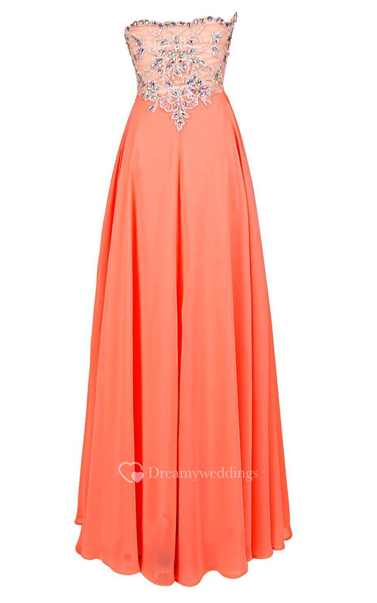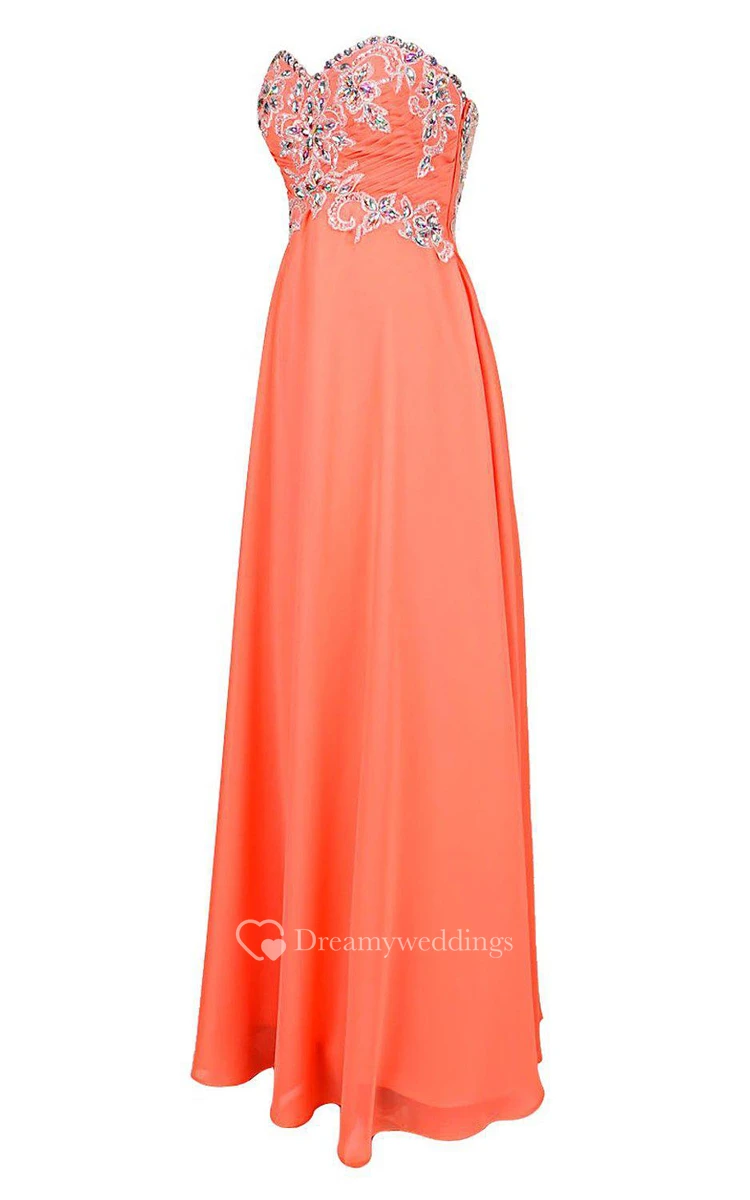 Sweetheart Chiffon Gown With Appliques and Beadings