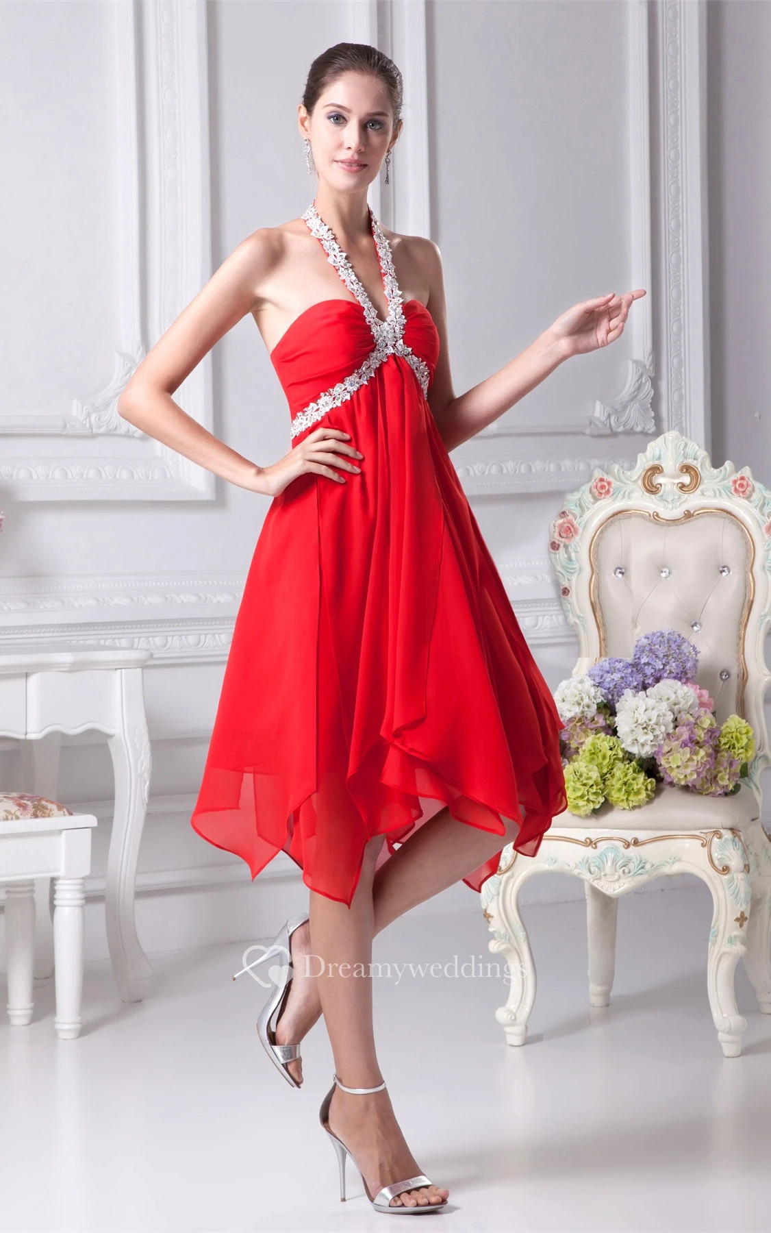 Sweetheart Chiffon Midi Empire Dress With Gemmed Halter