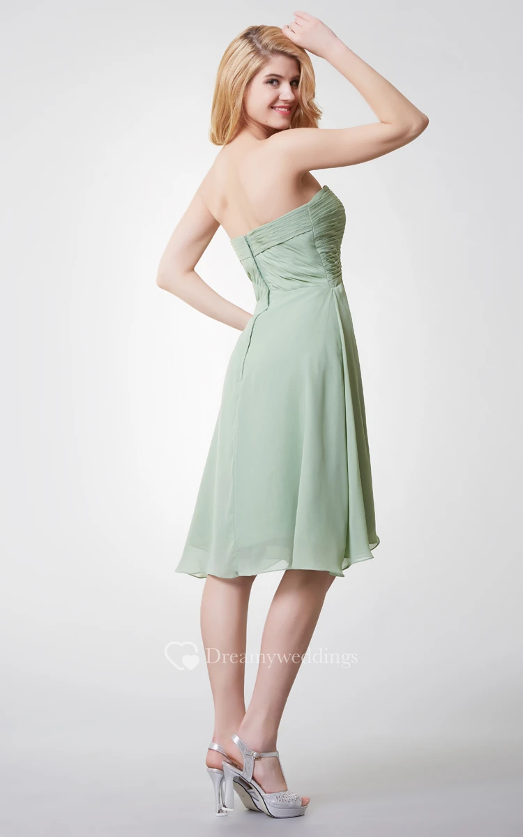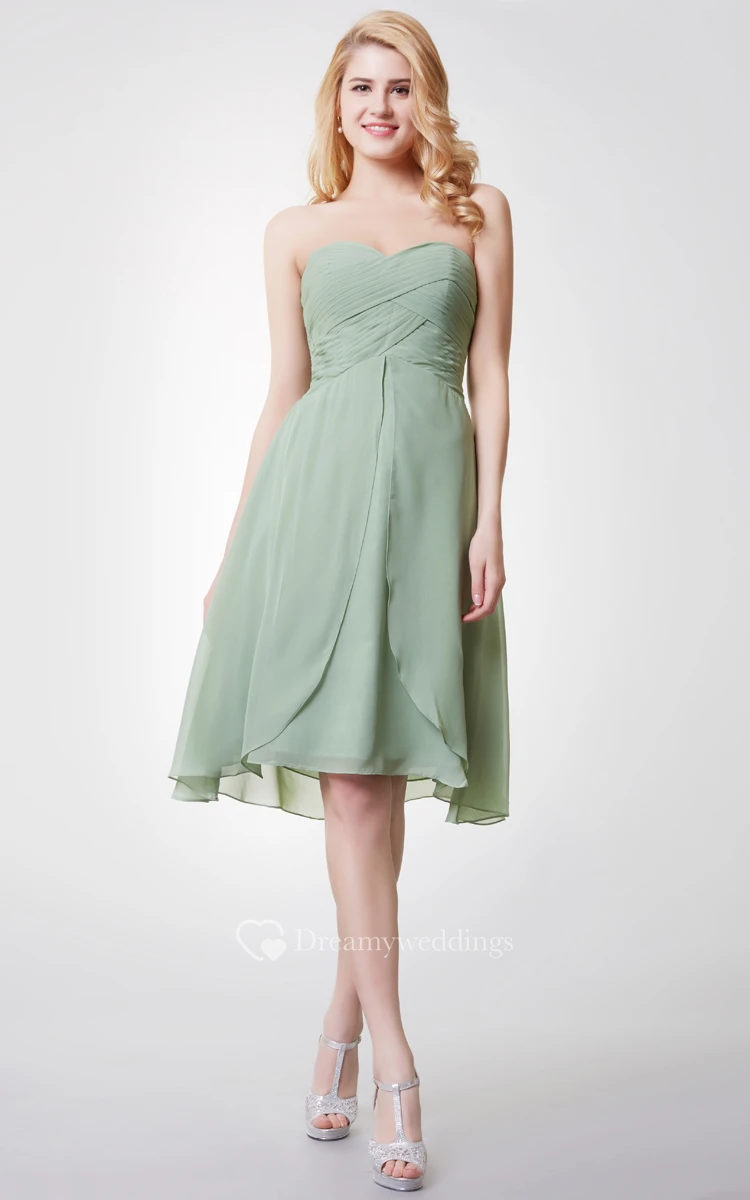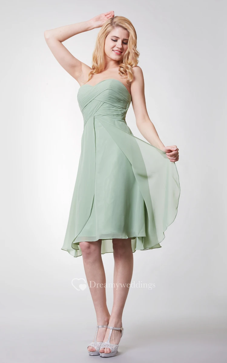 Sweetheart Criss Crossed Knee Length Chiffon Dress With Tiers