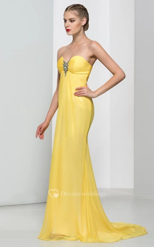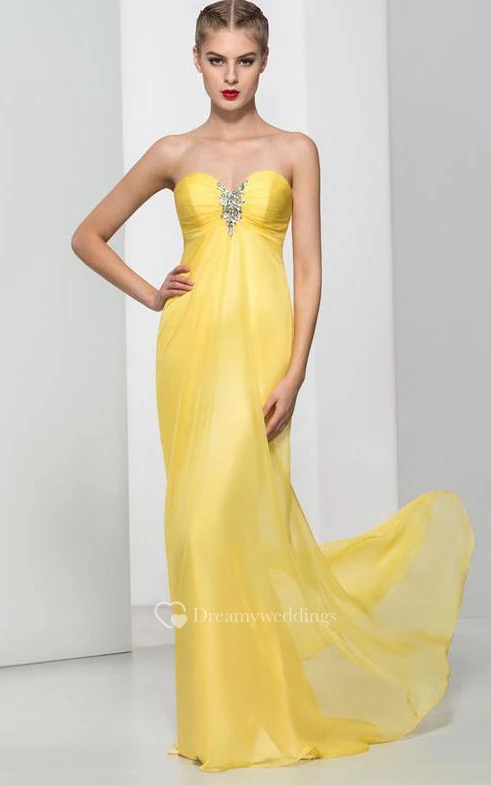 Sweetheart Crystal Pleats Long Prom Dress