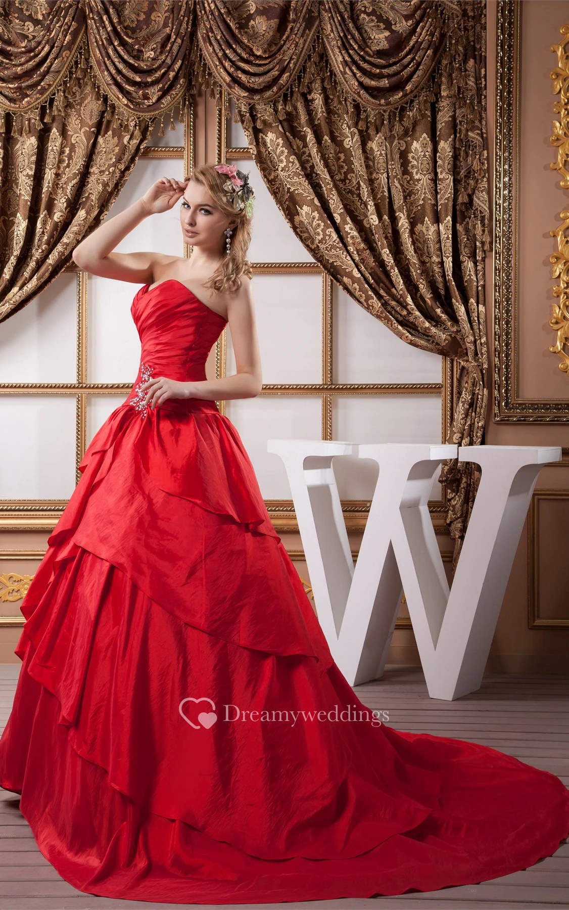 Sweetheart Draped Criss-Cross Gown With Crystal Detailing