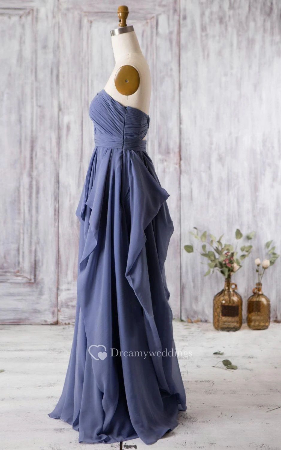 Sweetheart Empire Pleated A-line Chiffon Long Dress With Ruffles and Keyhole