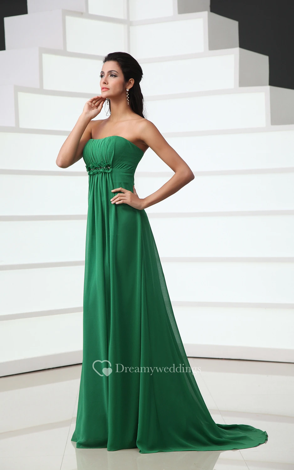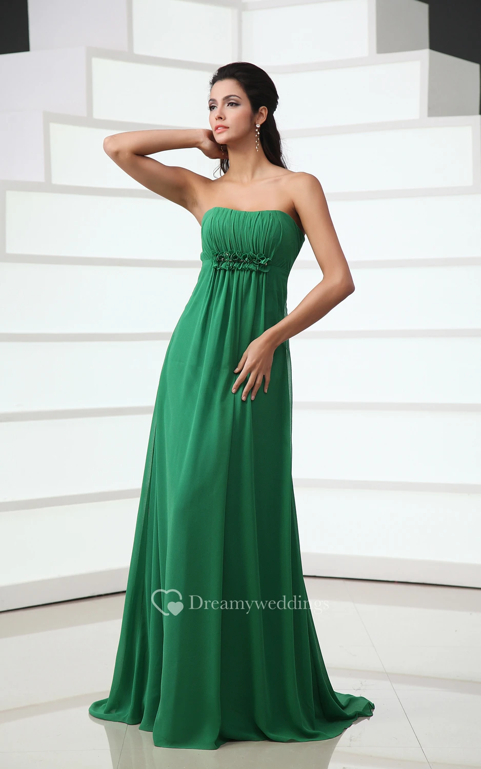 Sweetheart Floor-Length Chiffon Dress With Floral Ruching