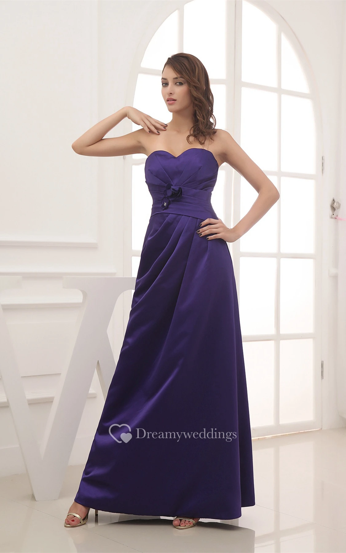 Sweetheart Floor-Length Sheath Central Ruching and Dress With Flower