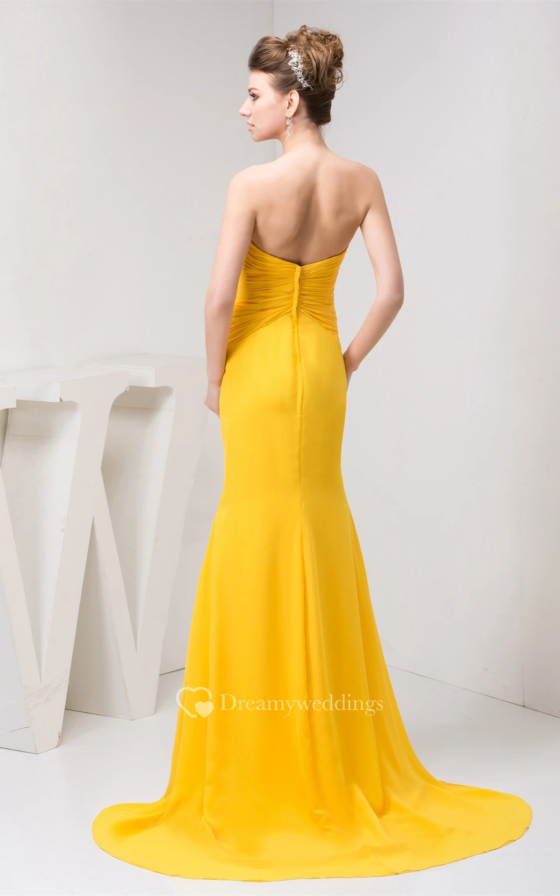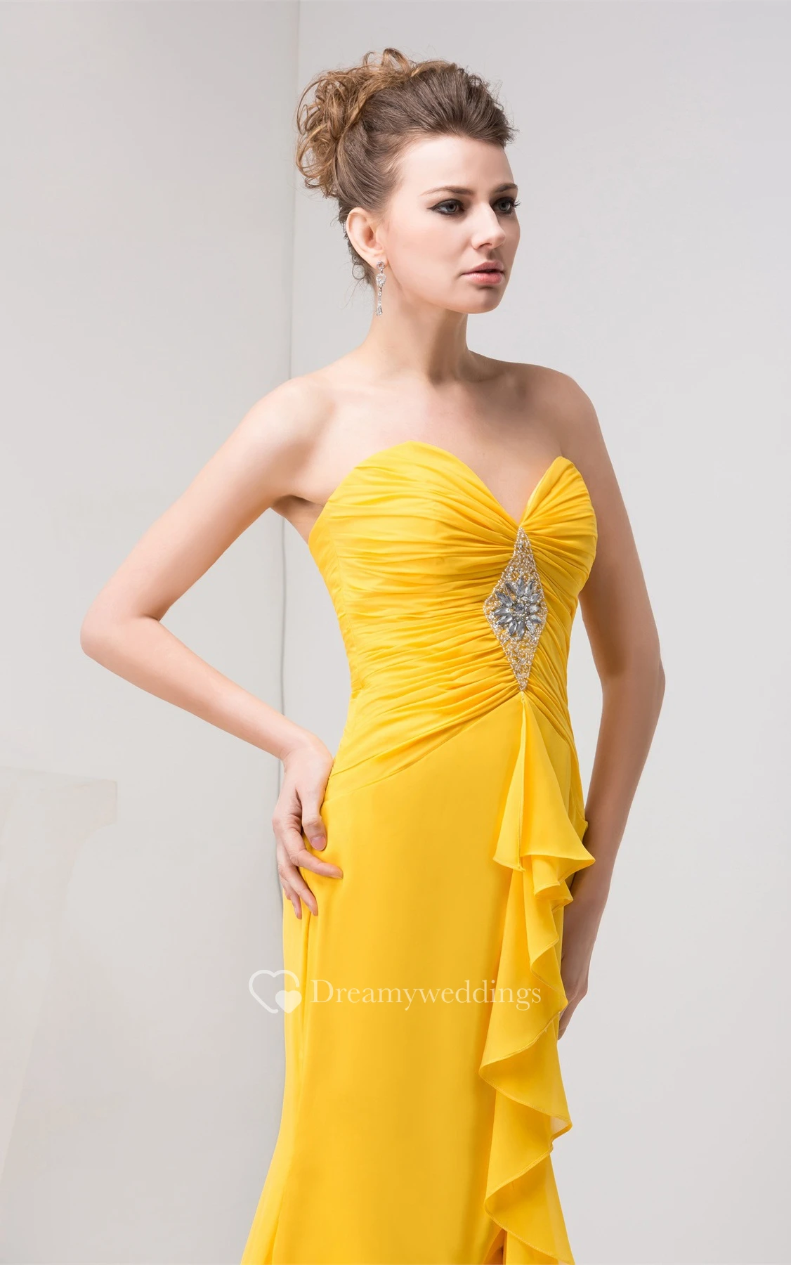 Sweetheart High-Low Chiffon Criss-Cross Draping and Dress With Broach