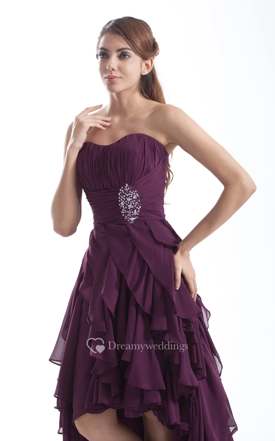 Sweetheart High-Low Dress With Beading and Cascading Ruffles