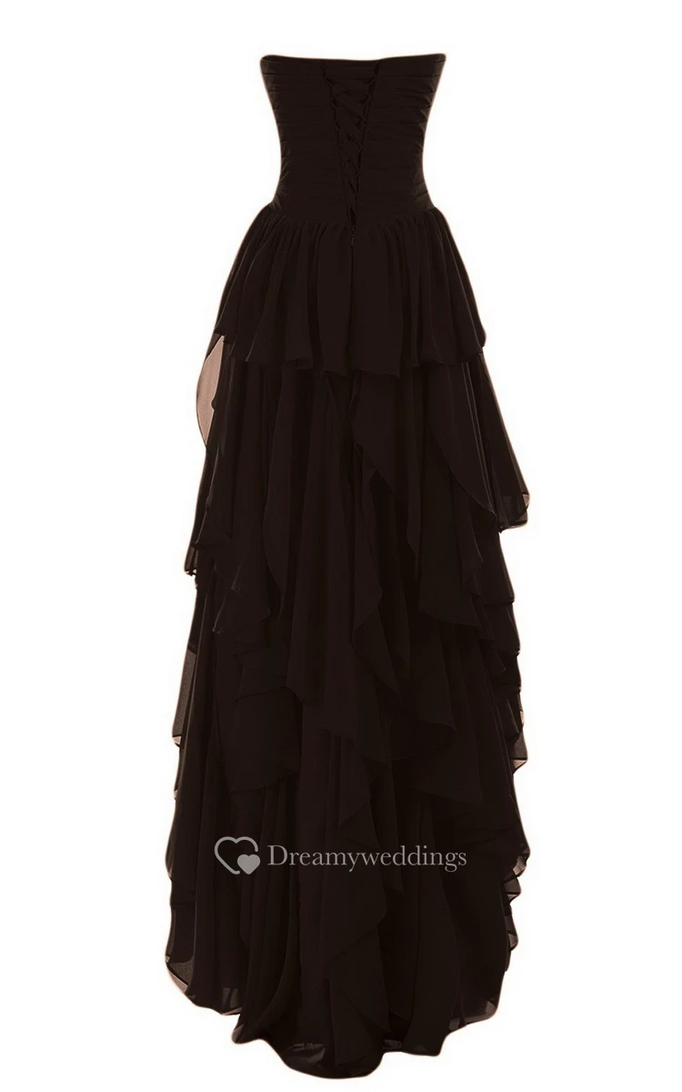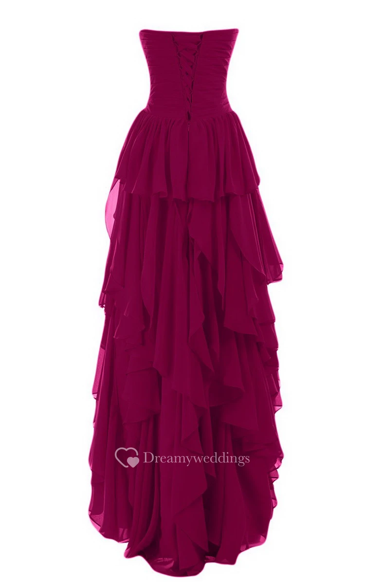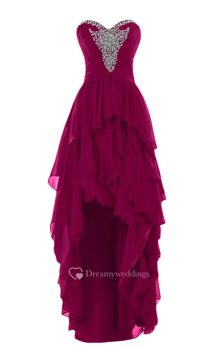 Sweetheart High-low Tiered Chiffon Dress With Beadings