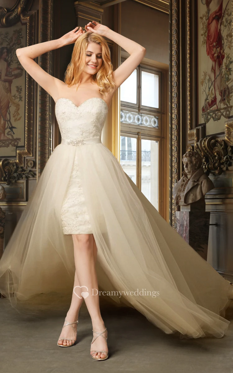 WOW!! I purchased this very innovative dress from here, innovative because I can remove the skirt from the dress, never wore this design before. The dress is sleeve less and has an amazing sweetheart neckline. Short white dresses look great on me, so I took no chances and ordered the same style for my wedding day. I shared this dress on Pinterest and my friends really loved the design. Even though the dress is strapless it is very comfortable to carry because there is an inner bra inside. I also liked the white color, its perfect and not too milky white. I am going to be a beautiful sexy bride. The dress is very modern but kind of has a vintage feel which I like; it's like best of both modern and old design. I really liked this site. The clothes here are cheap compare to the other online store I visited before; also the collection is much bigger and has all type of designs. I also got my reception dress from this store. I think every bride to be needs to at least check this affordable collection out; it's the best collection I have seen so far.