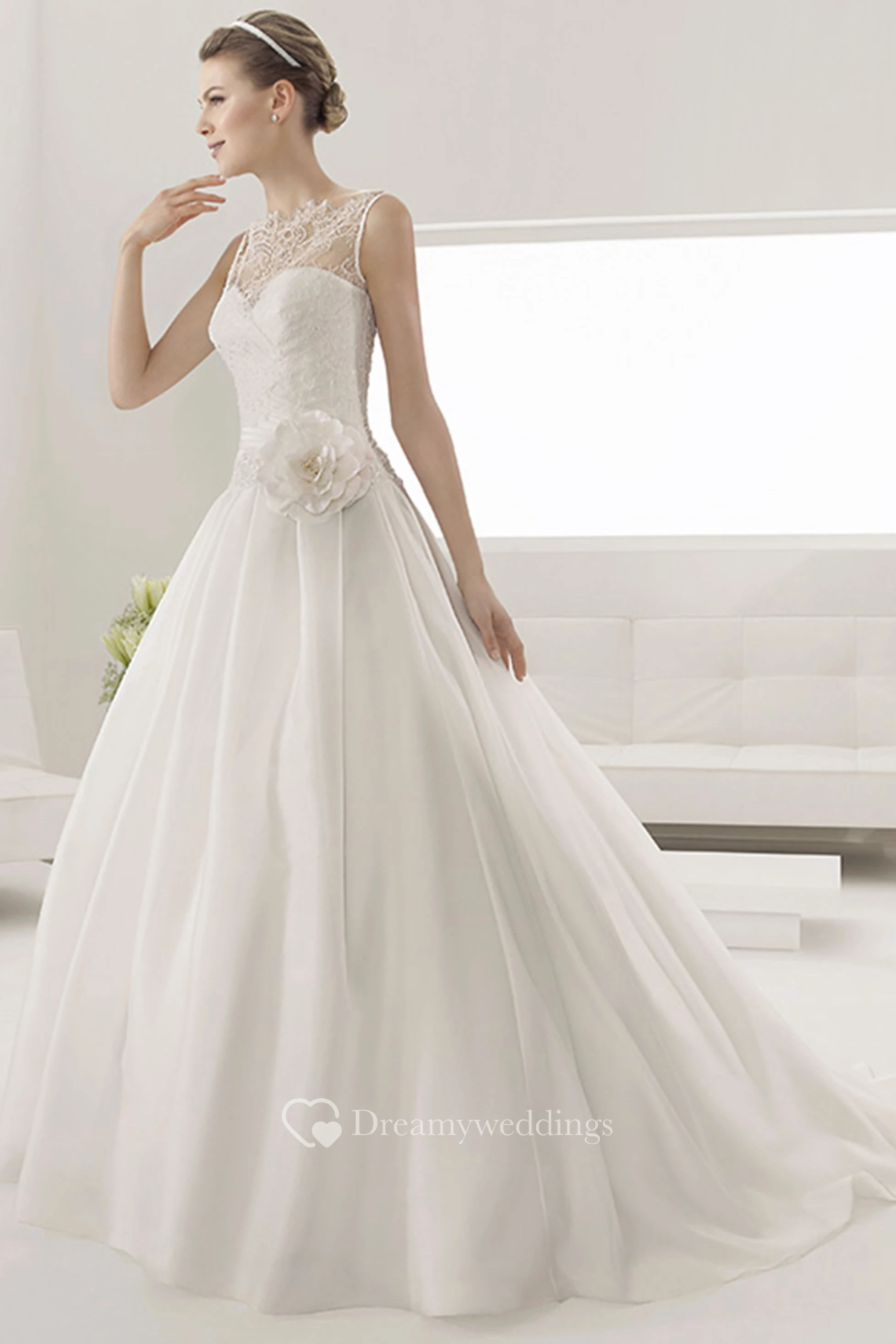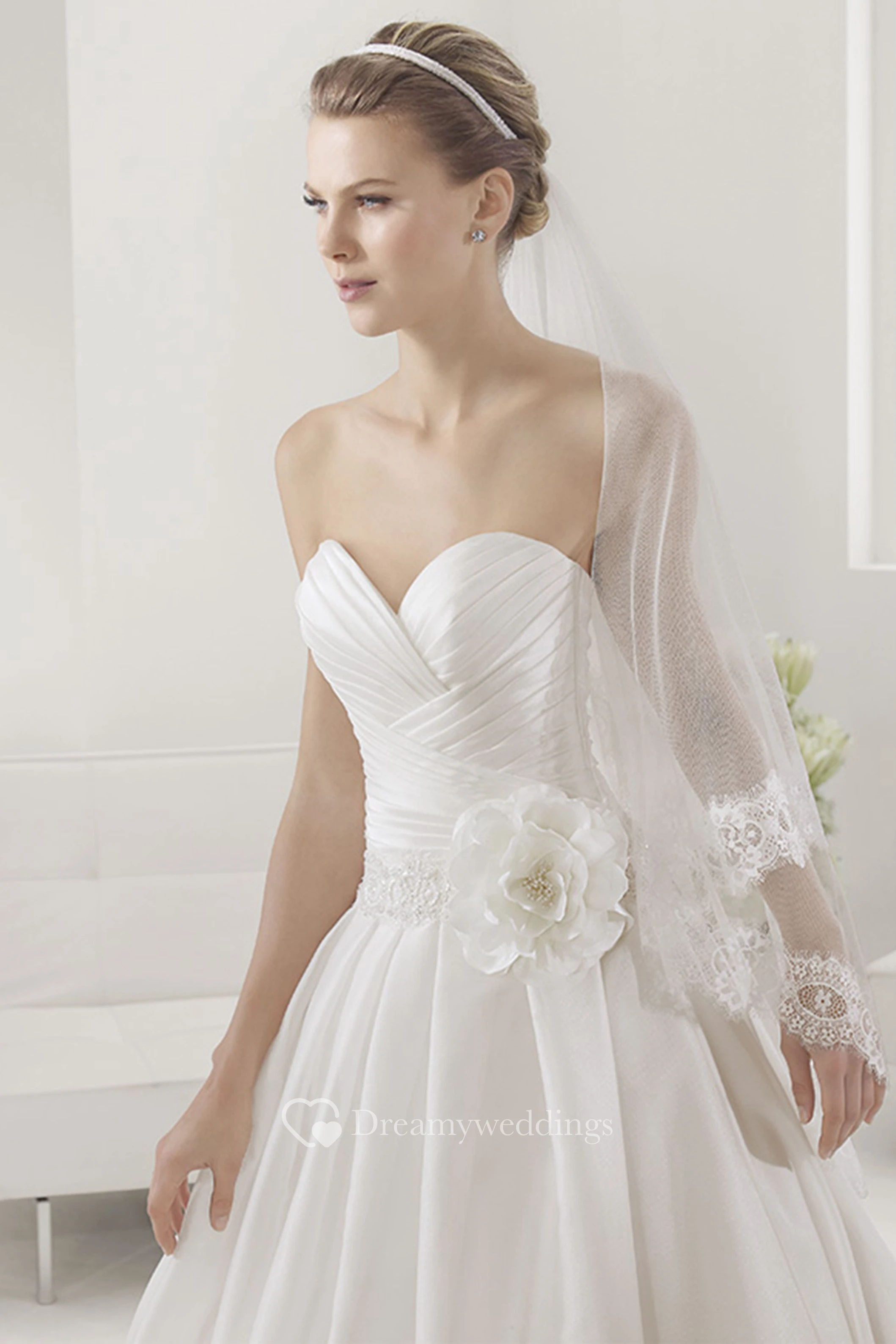 Sweetheart Lace Detailed Taffeta Gown With Flower And Removable Illusion Neck