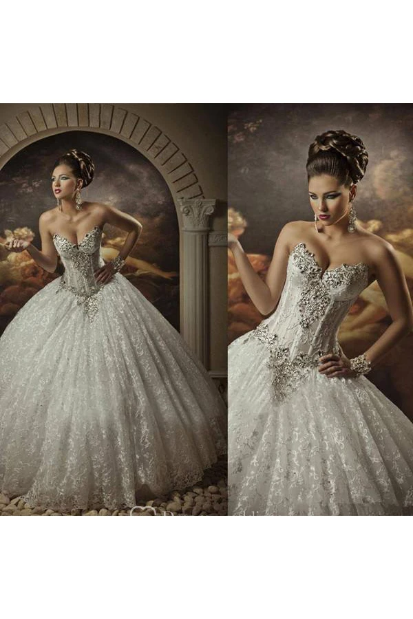 Sweetheart Lace Strapless Arabic Wedding Dresses Ball Gown Sleeveless Beaded Bridal Gowns With Sequins Crystals