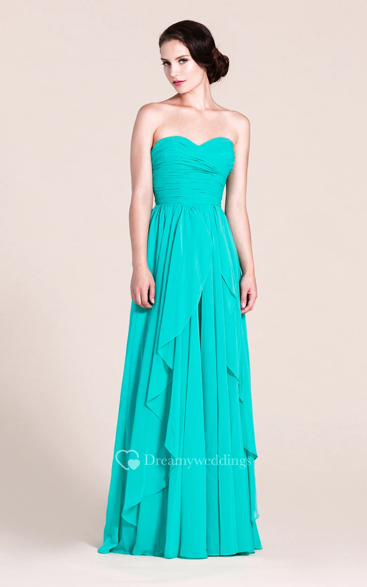 Sweetheart Layered Chiffon Dress With Pleats