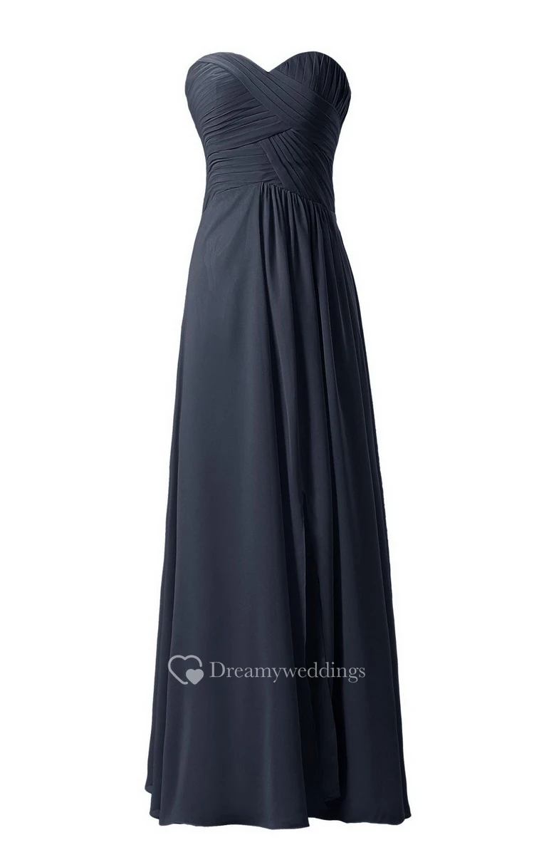 Sweetheart Long Chiffon Dress With Crisscross Ruching