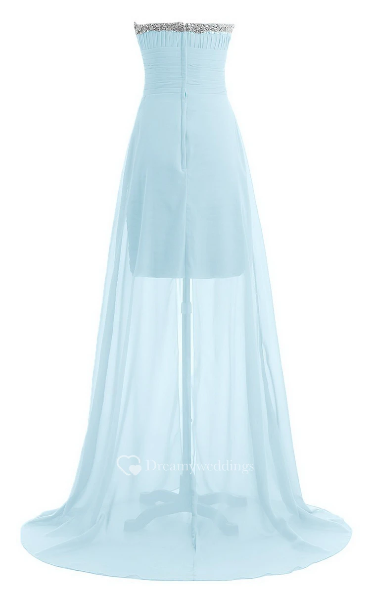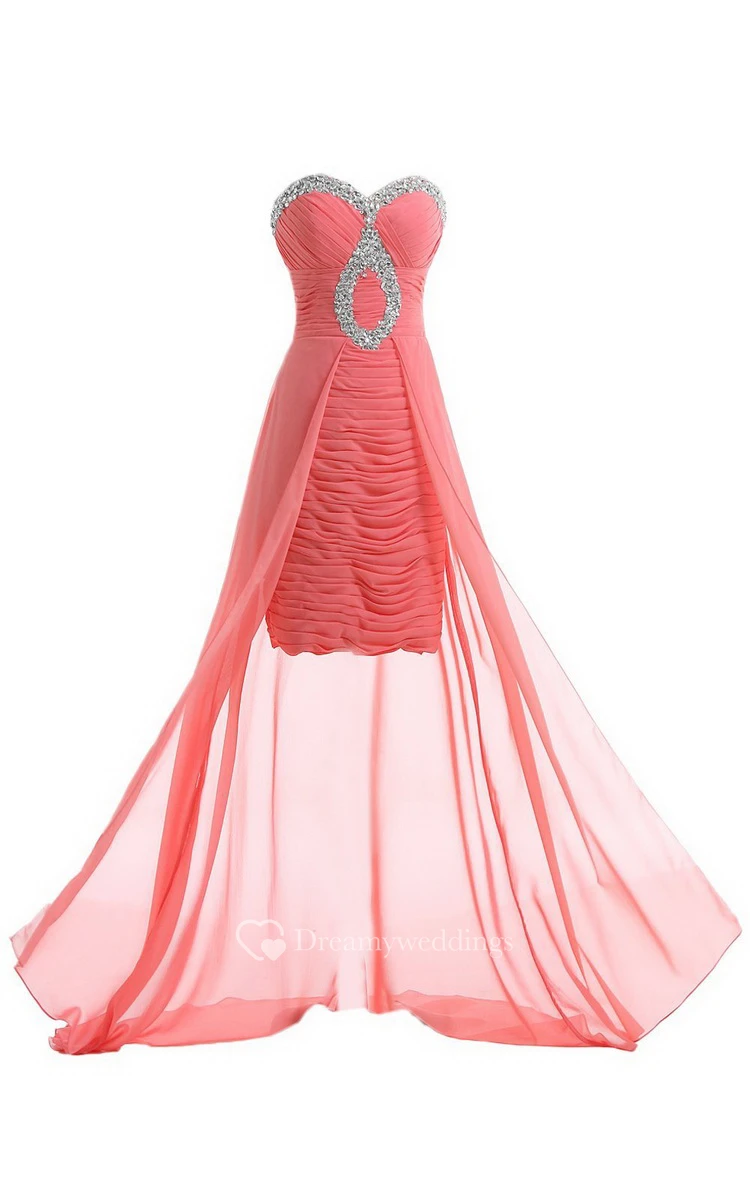 Sweetheart Long Chiffon Dress With Ruching and Sequins