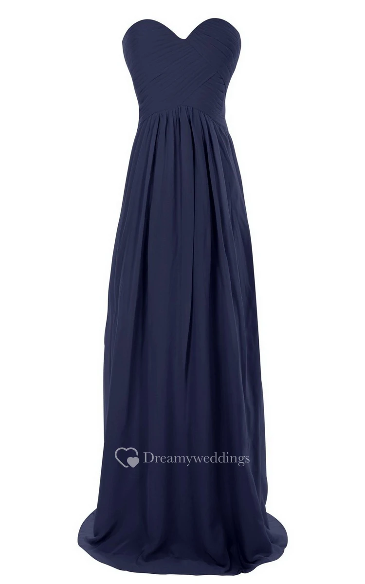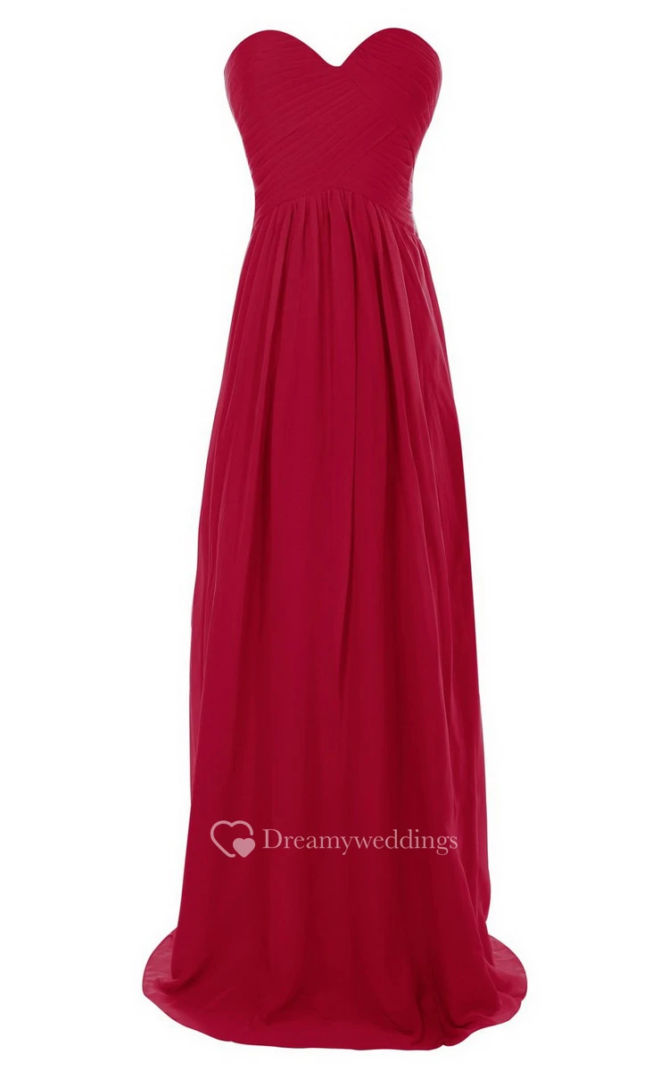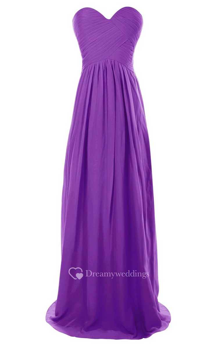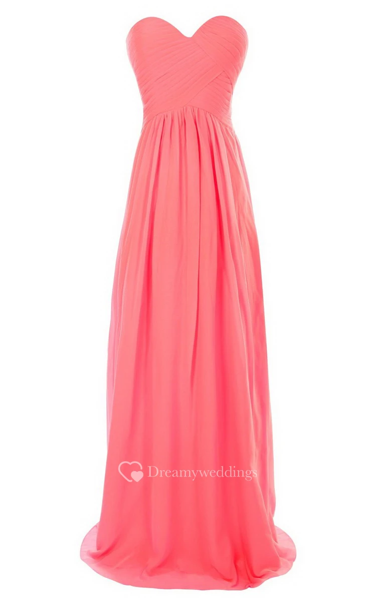 Sweetheart Long Chiffon Gown With Crisscross Ruching