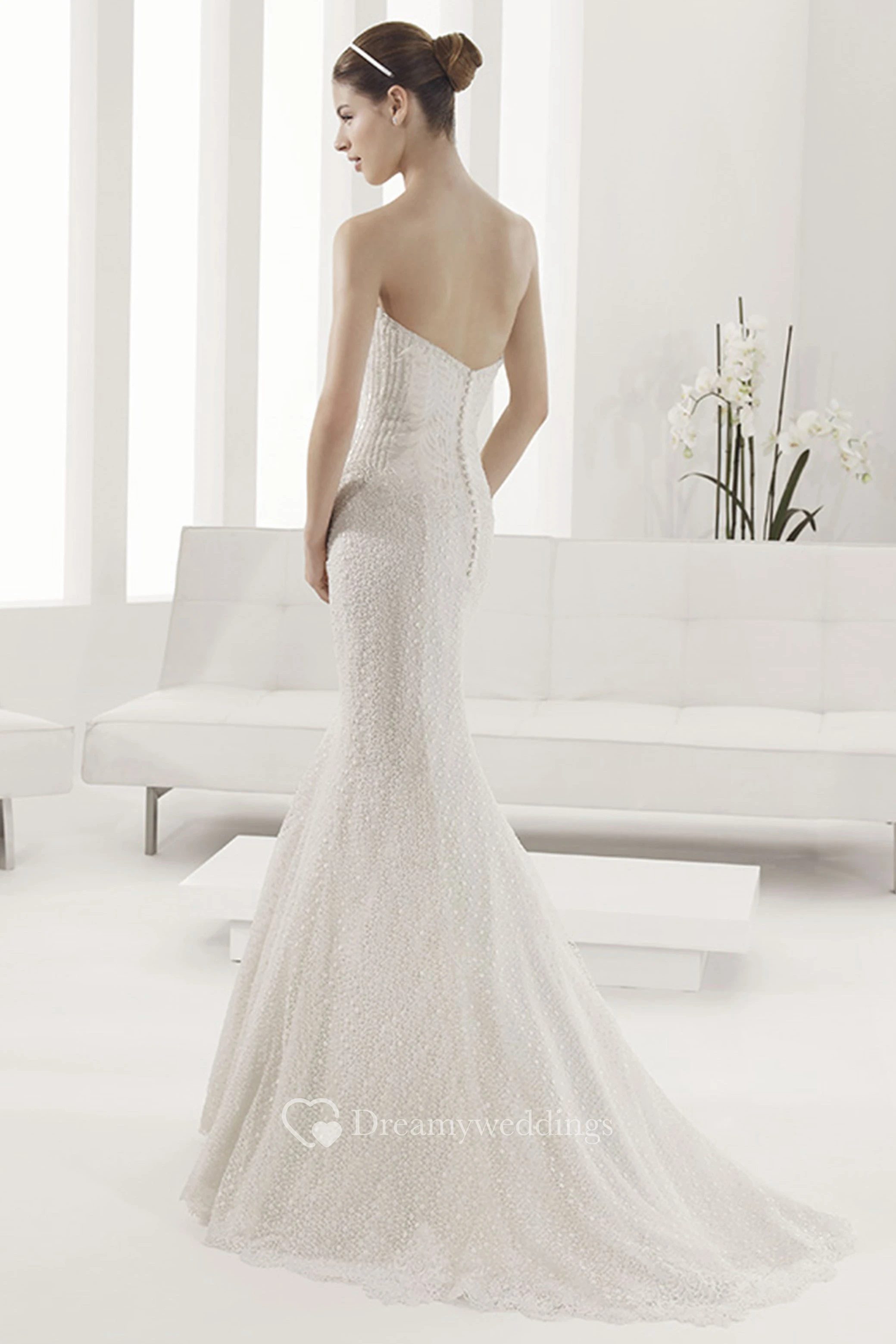 Sweetheart Long Wedding Dress With Lace Trumpet Skirt And Pearl Bodice