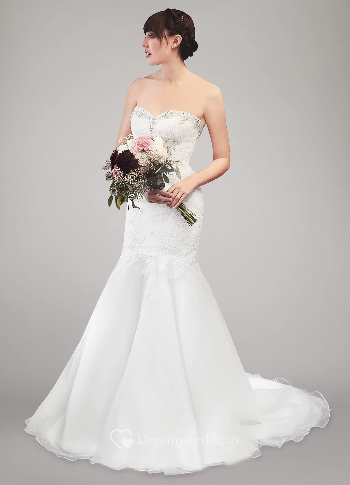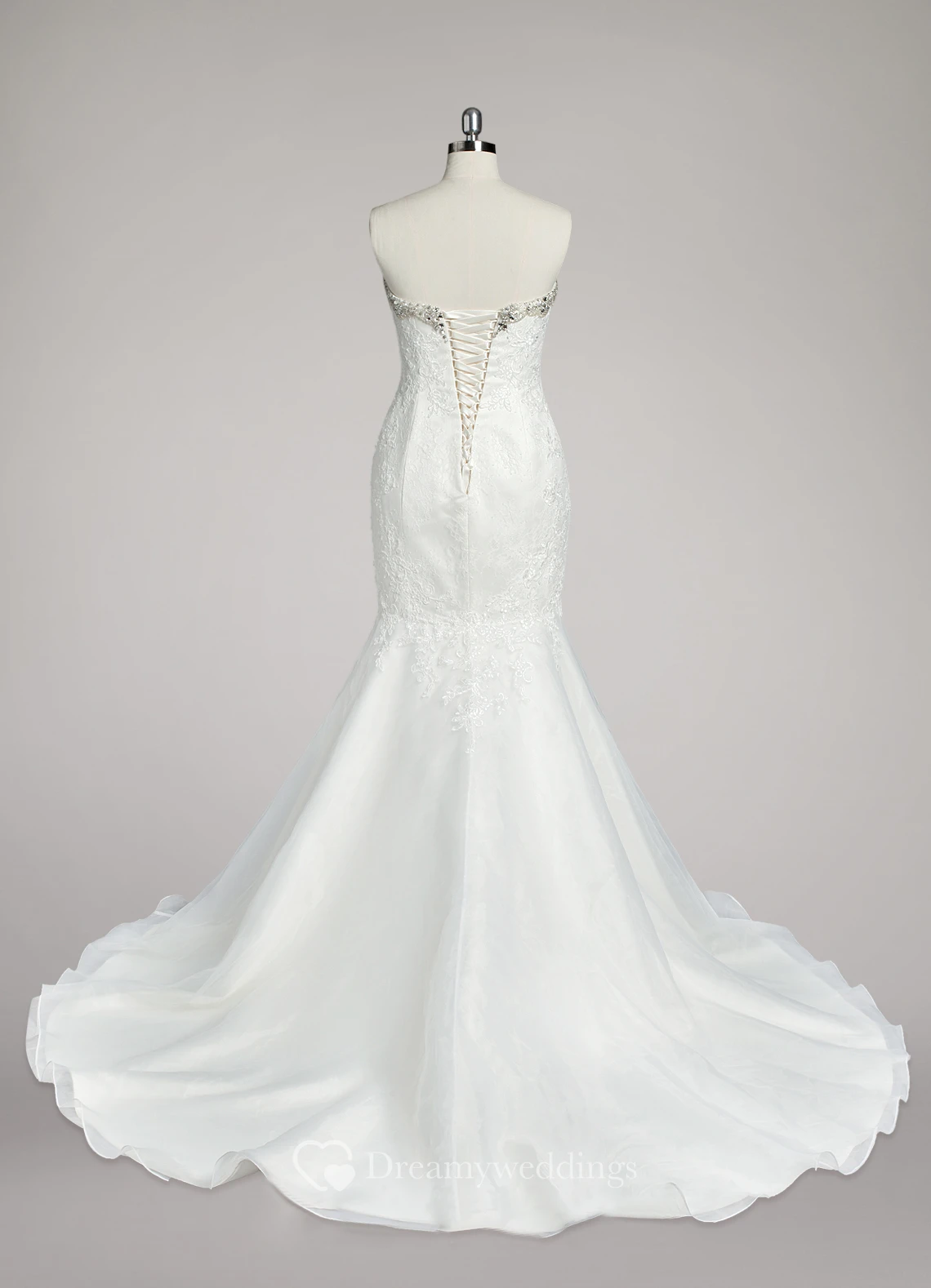 Sweetheart Mermaid Lace and Organza Wedding Dress With Beading