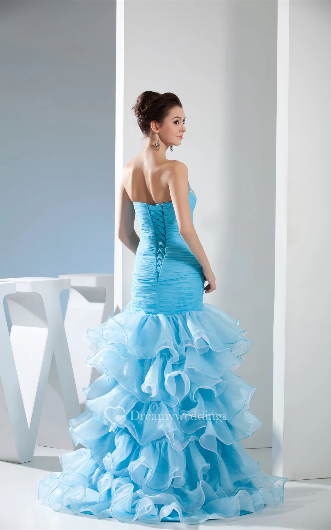Sweetheart Mermaid Ruched Gown With Tiered Ruffle and Crystal Detailing
