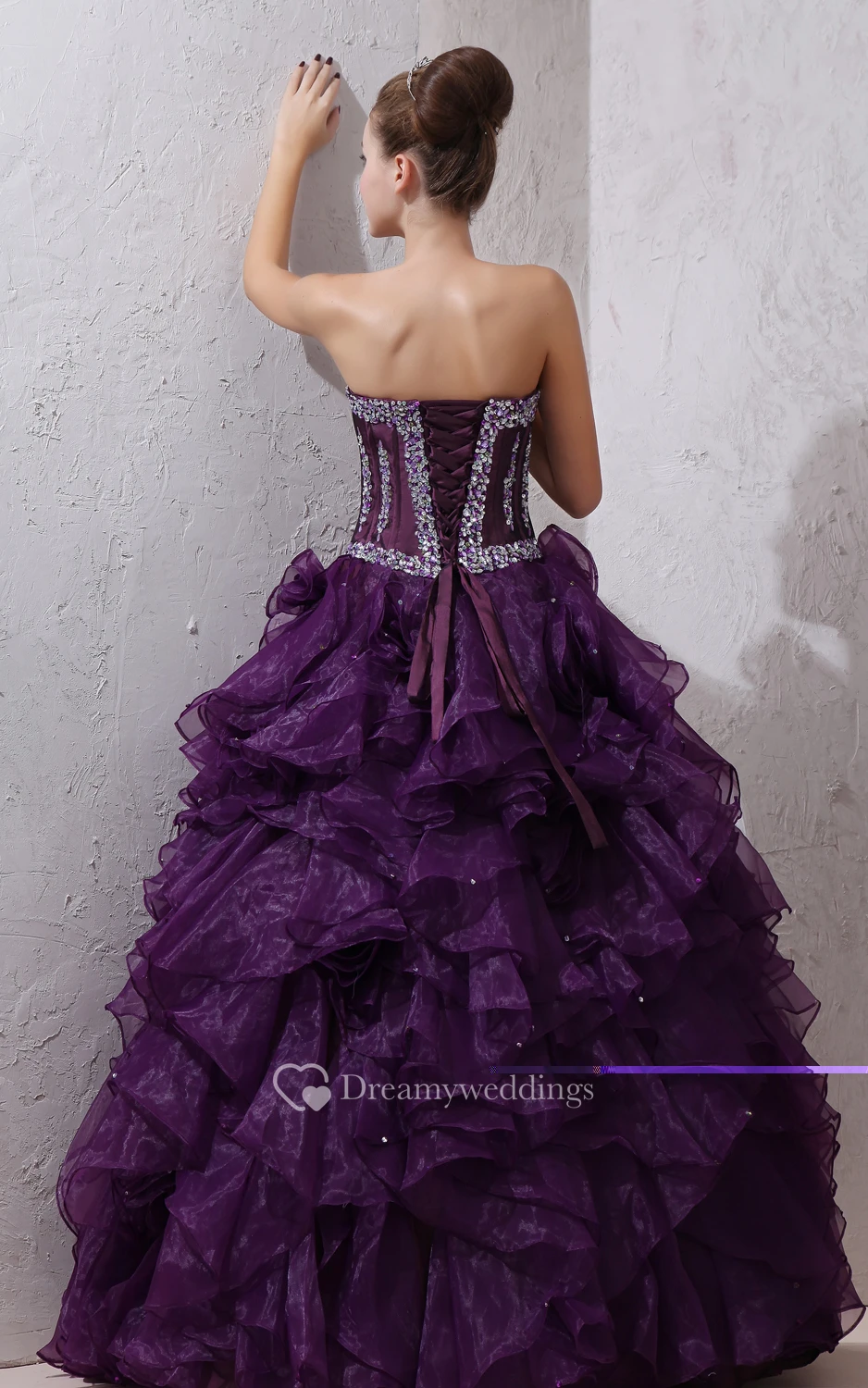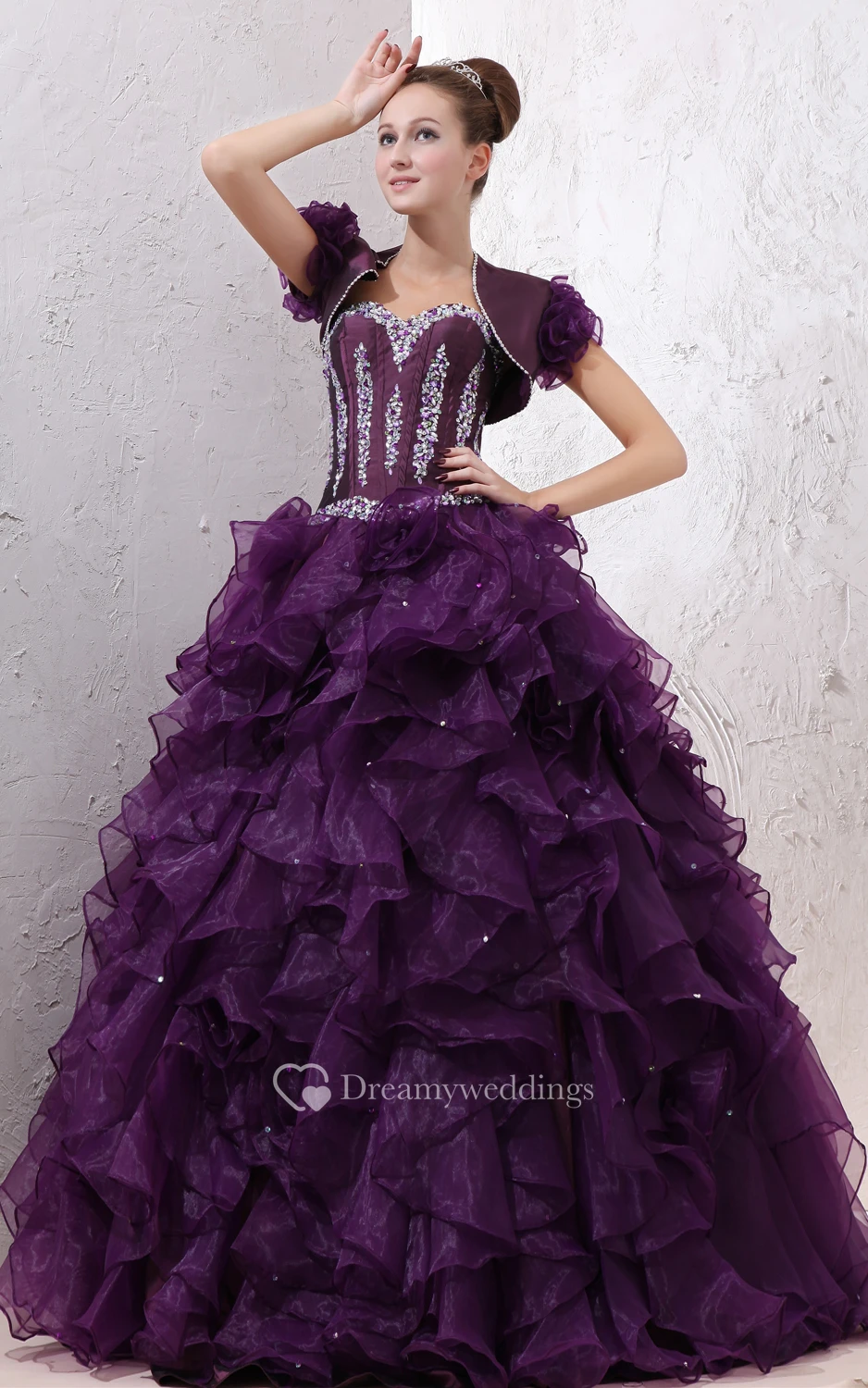 Sweetheart Organza Quinceanera Dress With Ruffles and Beading